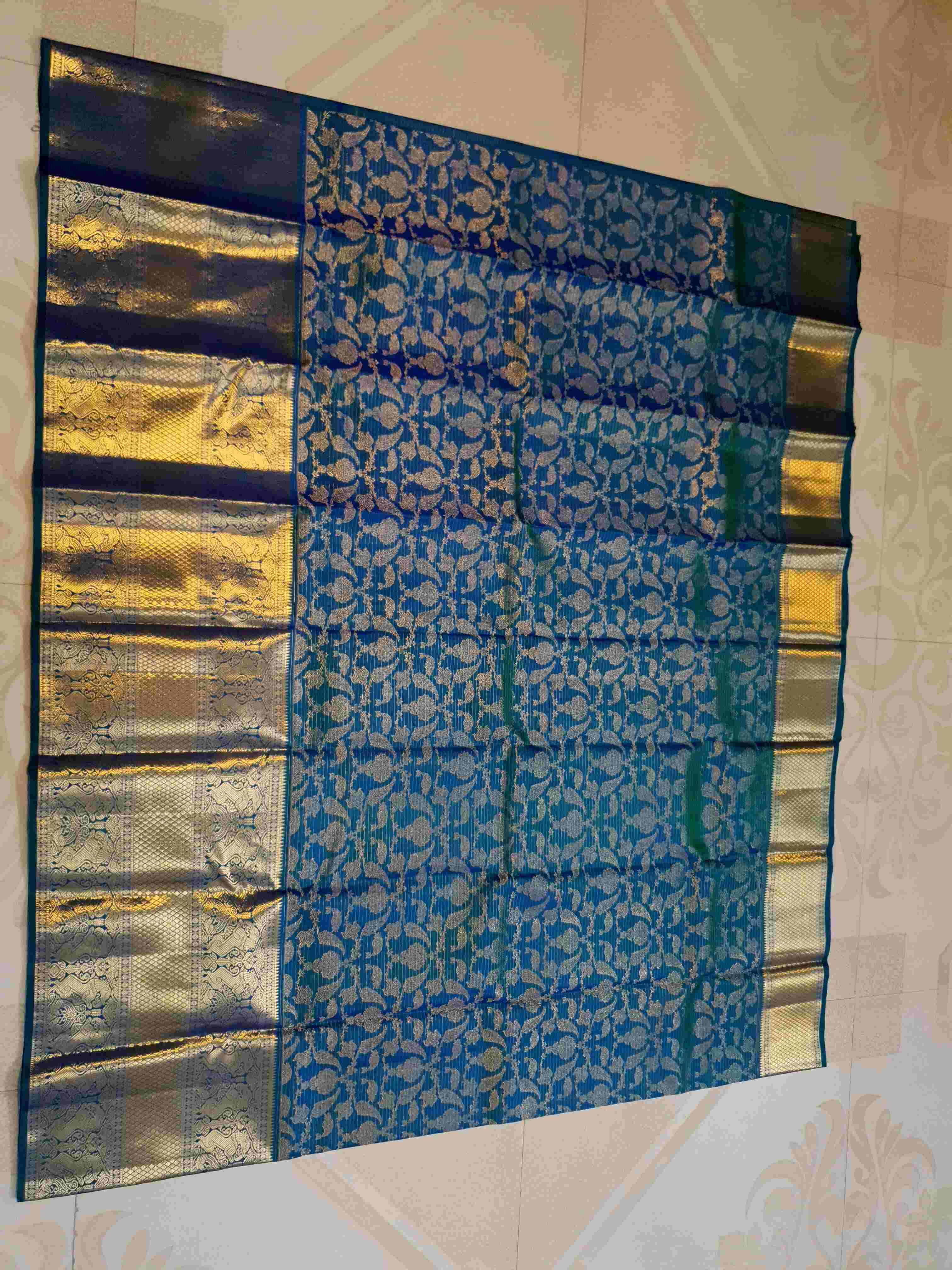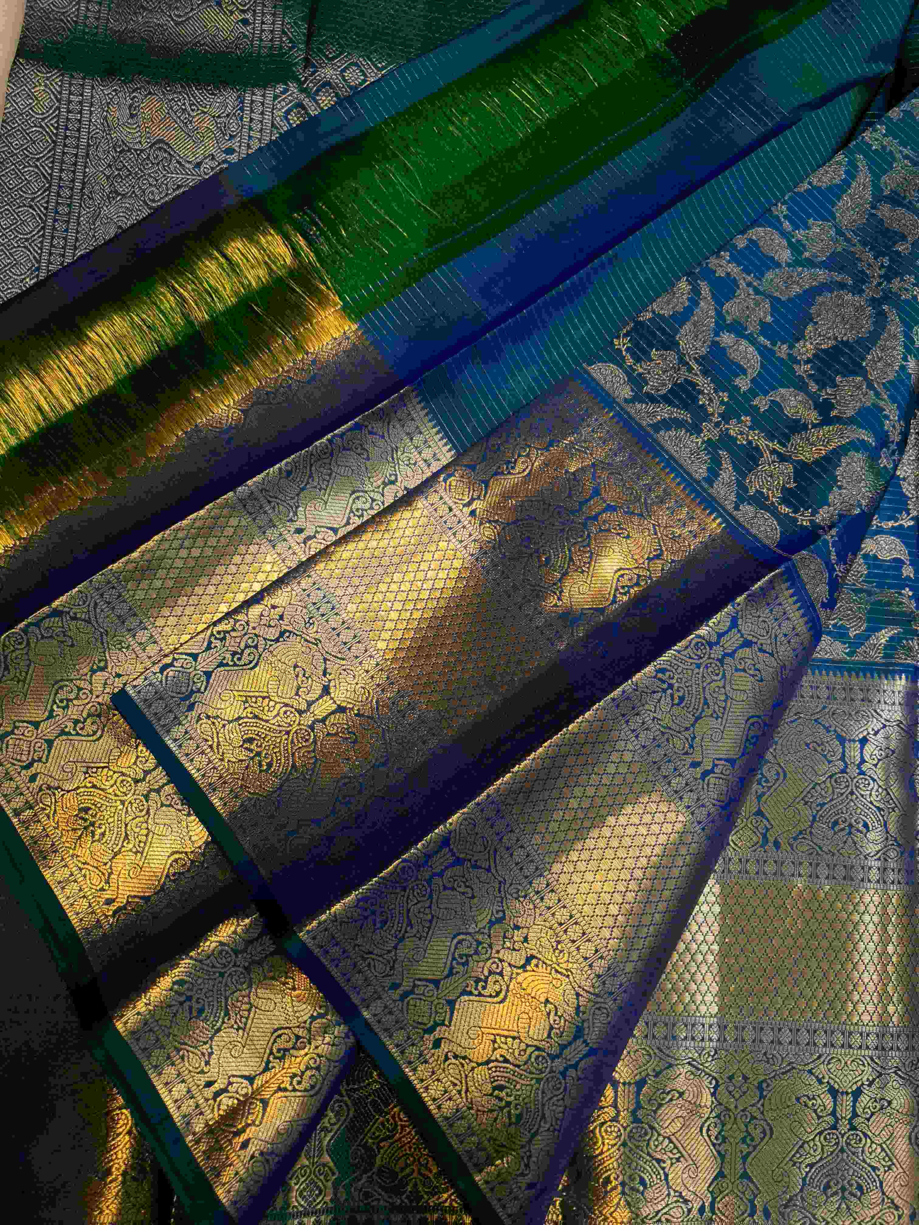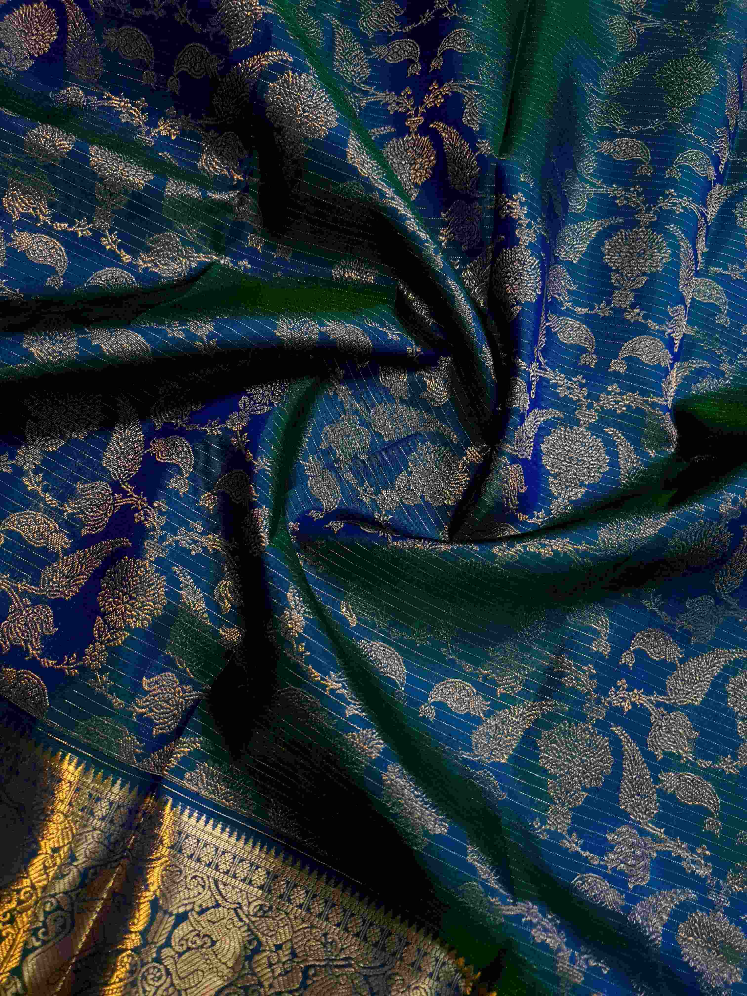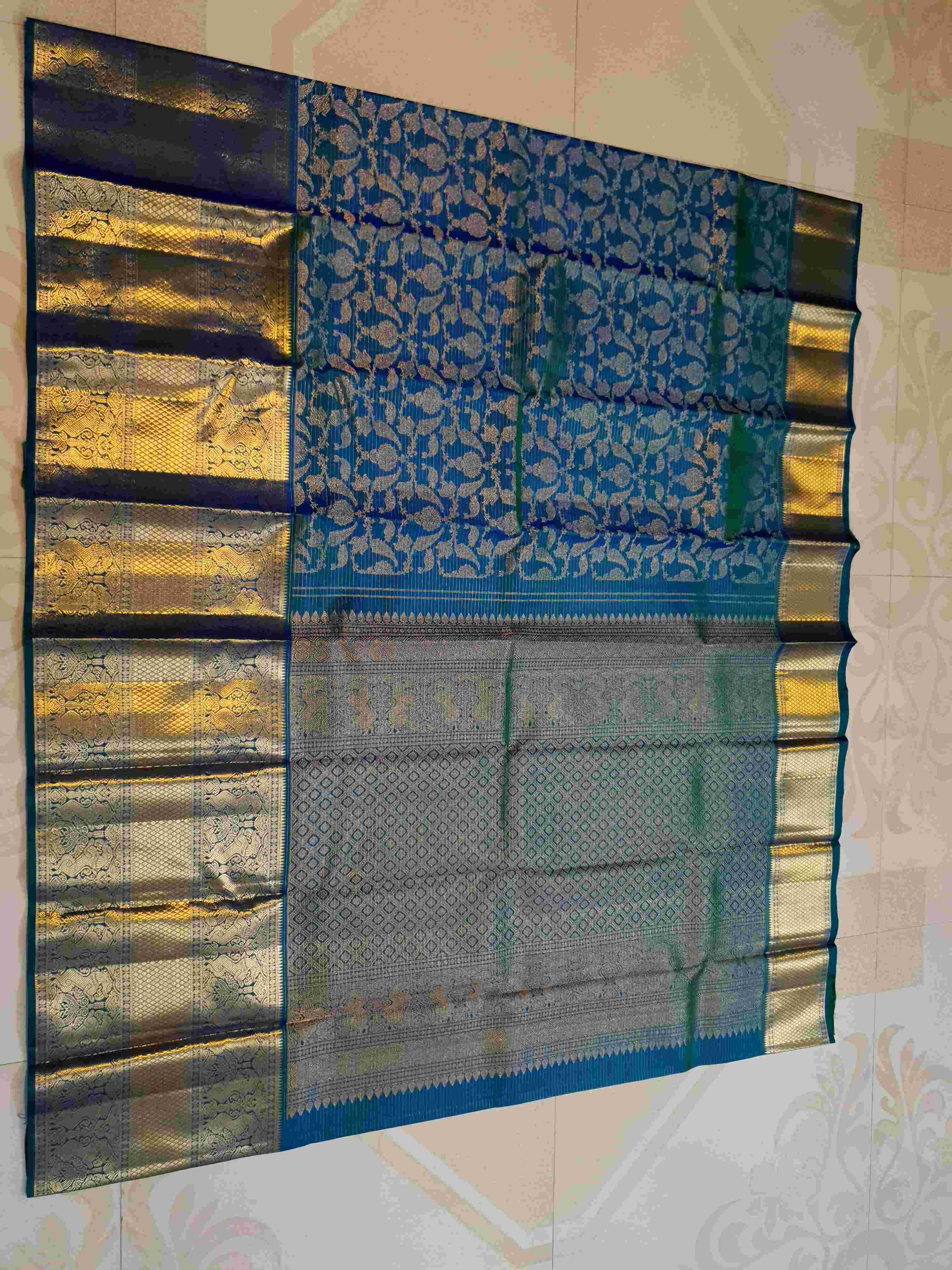 Peacock Blue Kanchipuram Handloom 2G Gold Vairaoosi Silk Saree