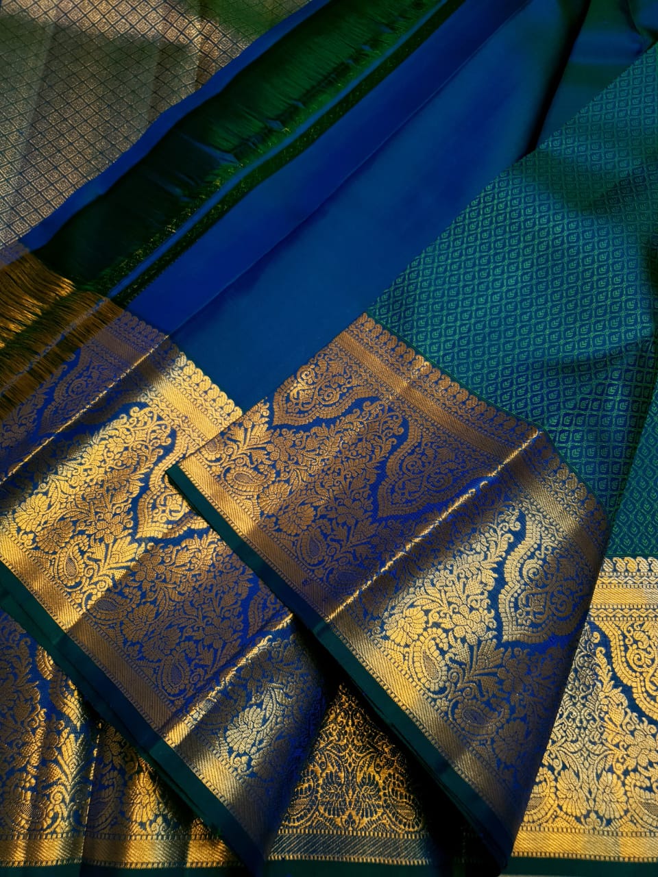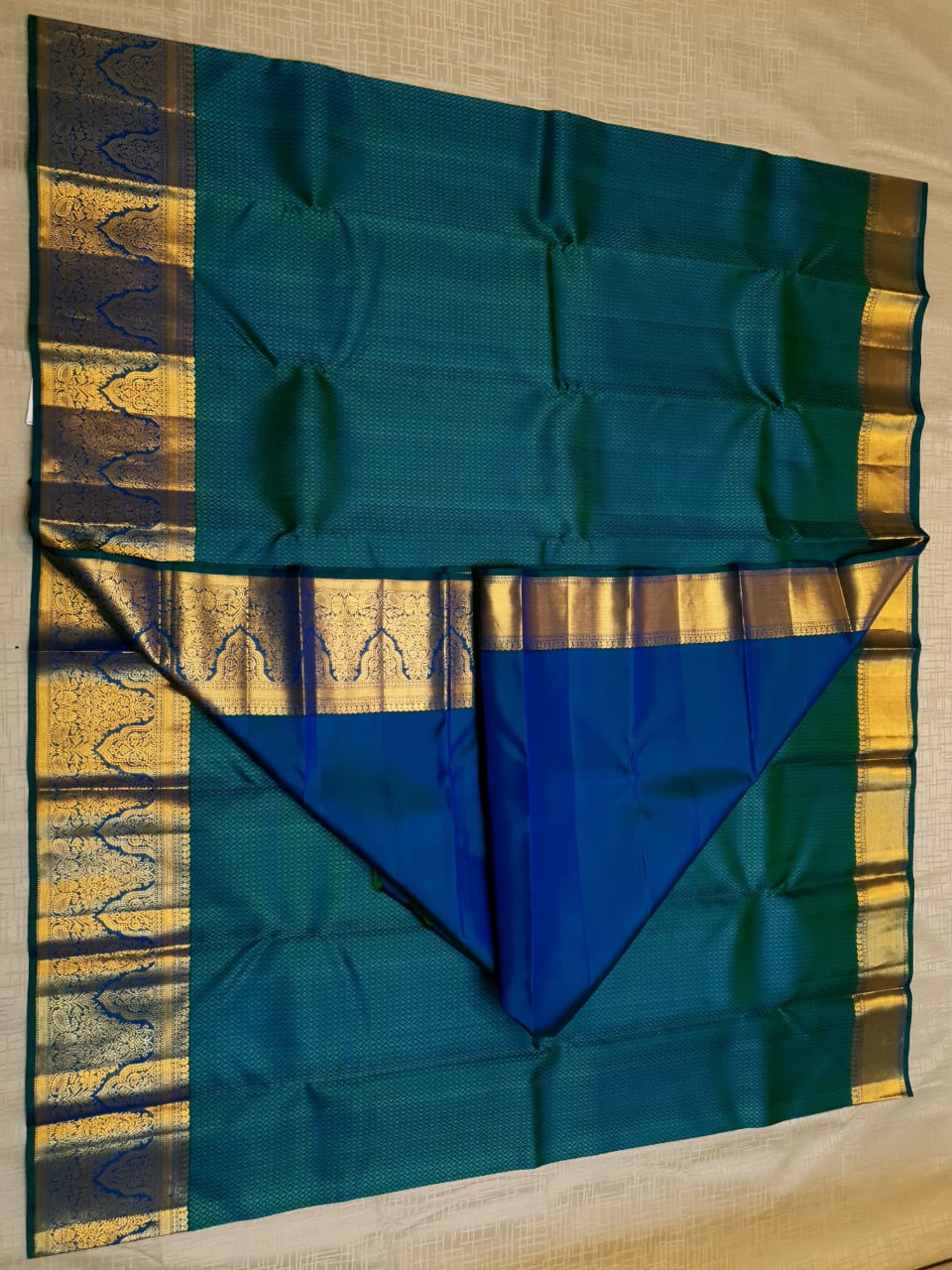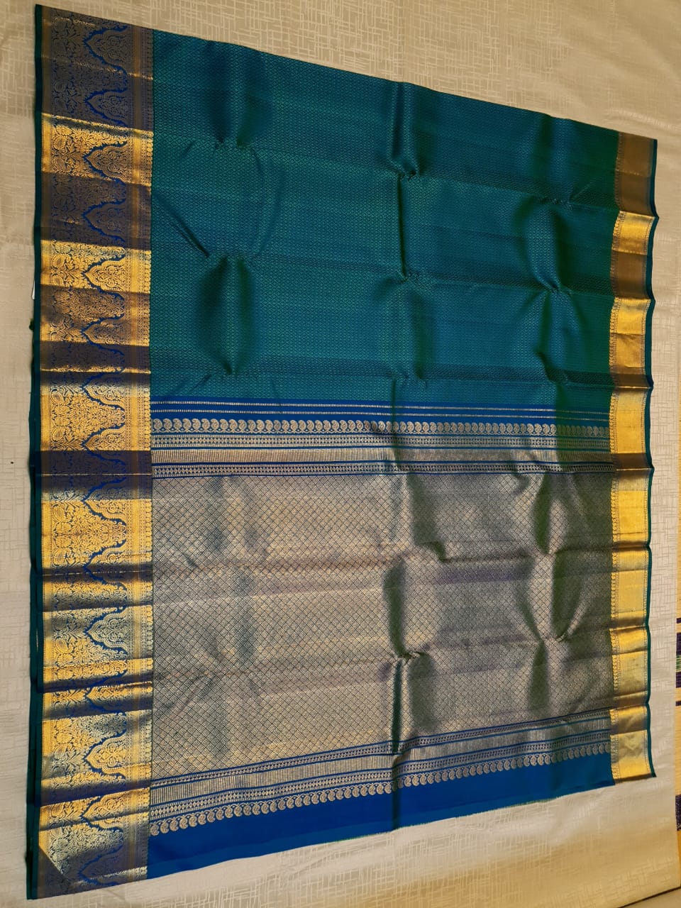 Peacock Blue Kanchipuram Handloom 2G Gold Pattu Silk Saree
