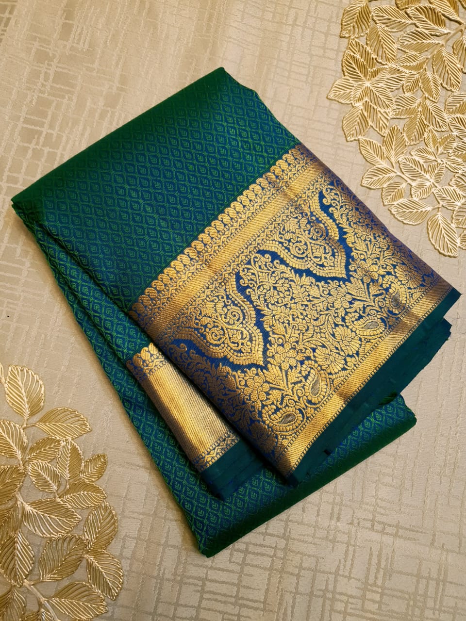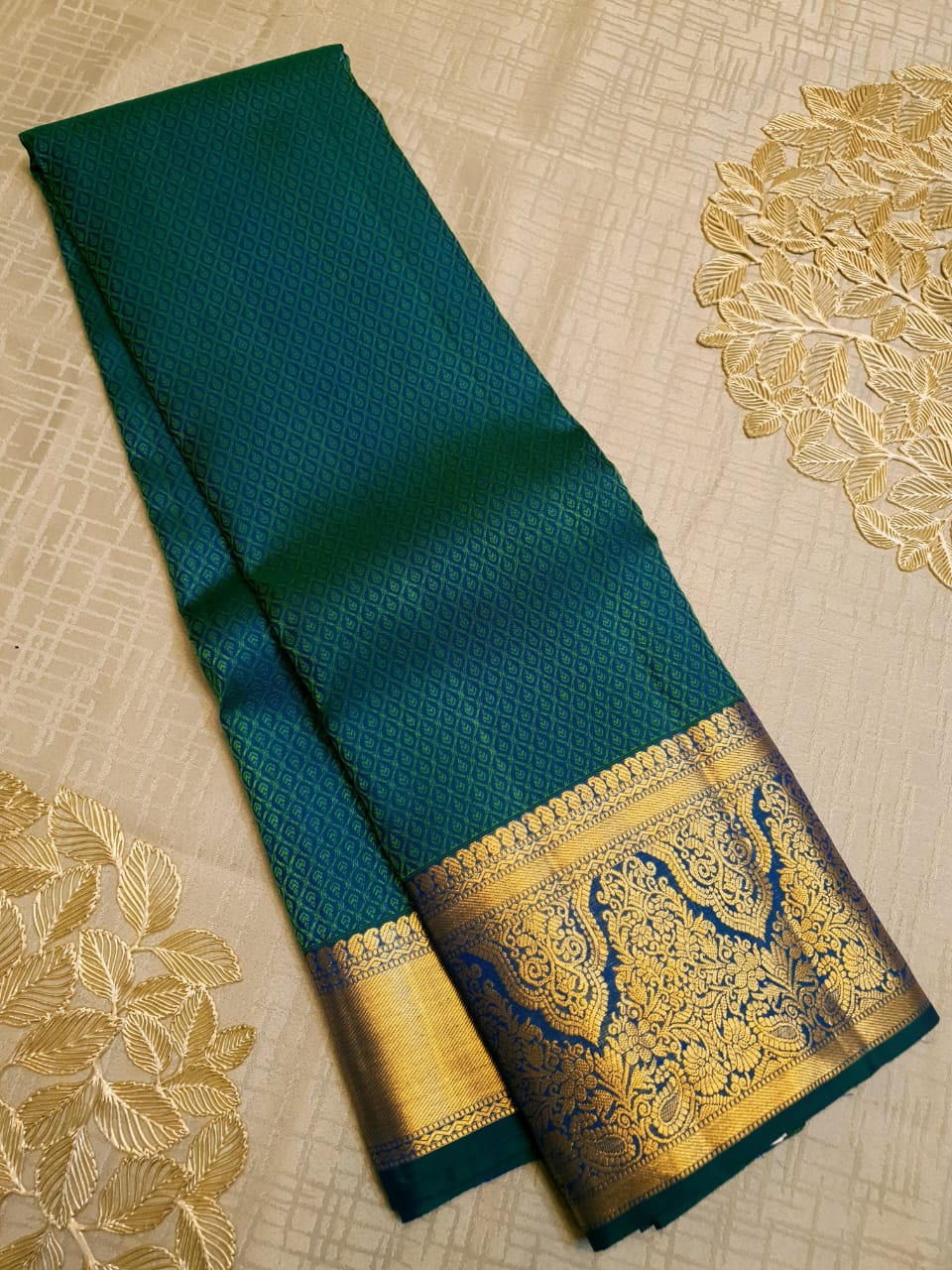 Bottle Green Kanchipuram Handloom 2G Gold Korvai Silk Saree