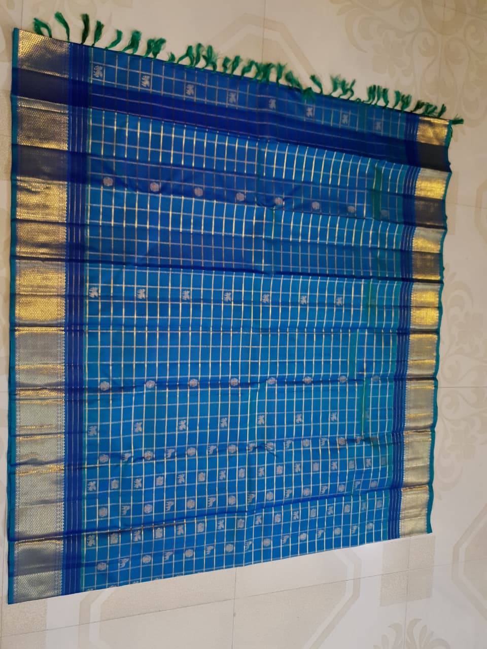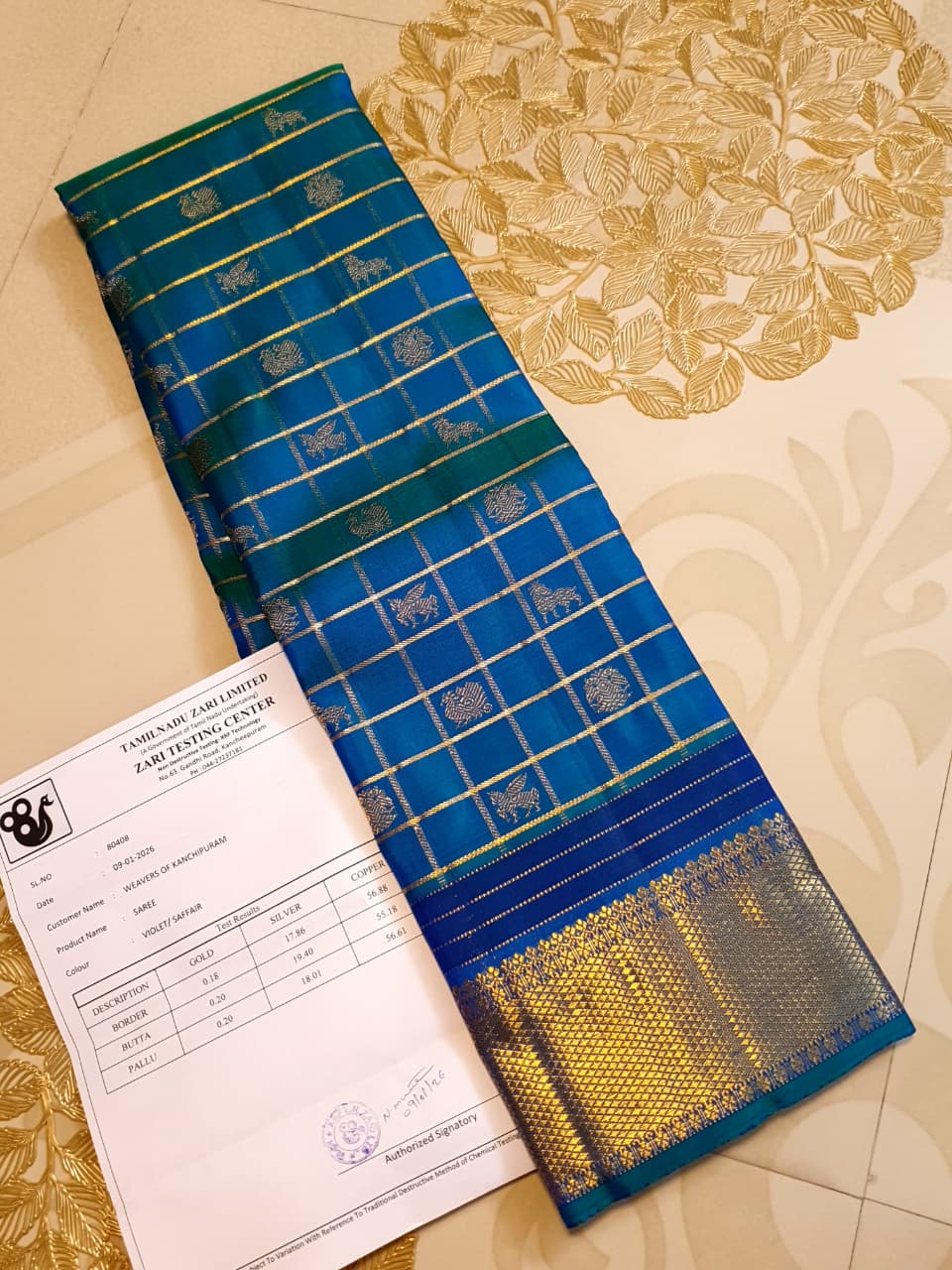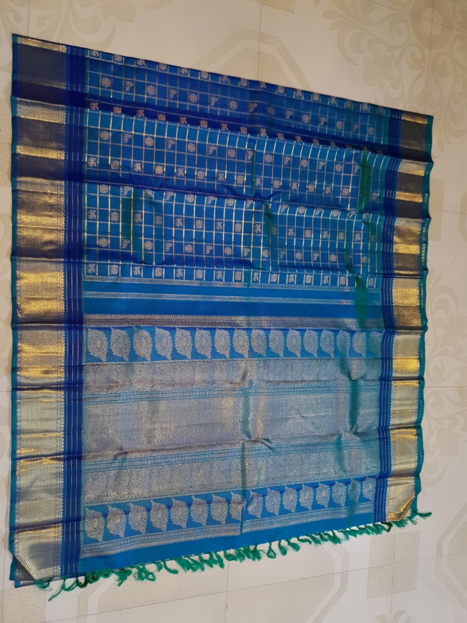 Blue Kanchipuram Handloom 3G Pure Gold Pattu Silk Saree