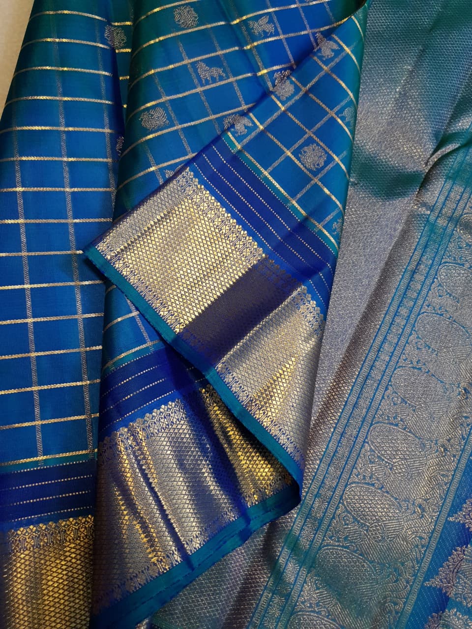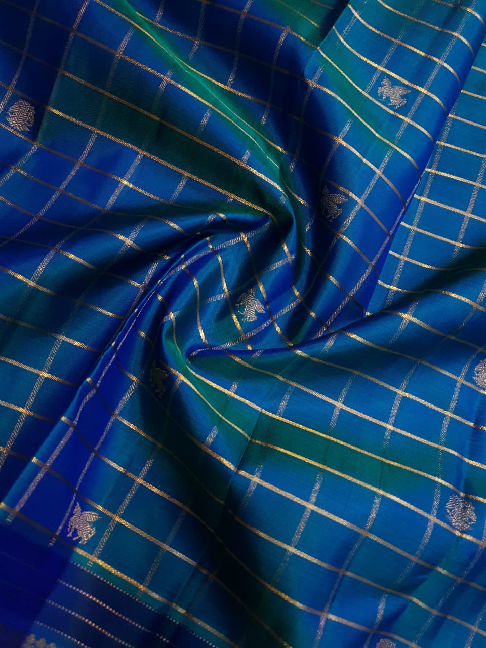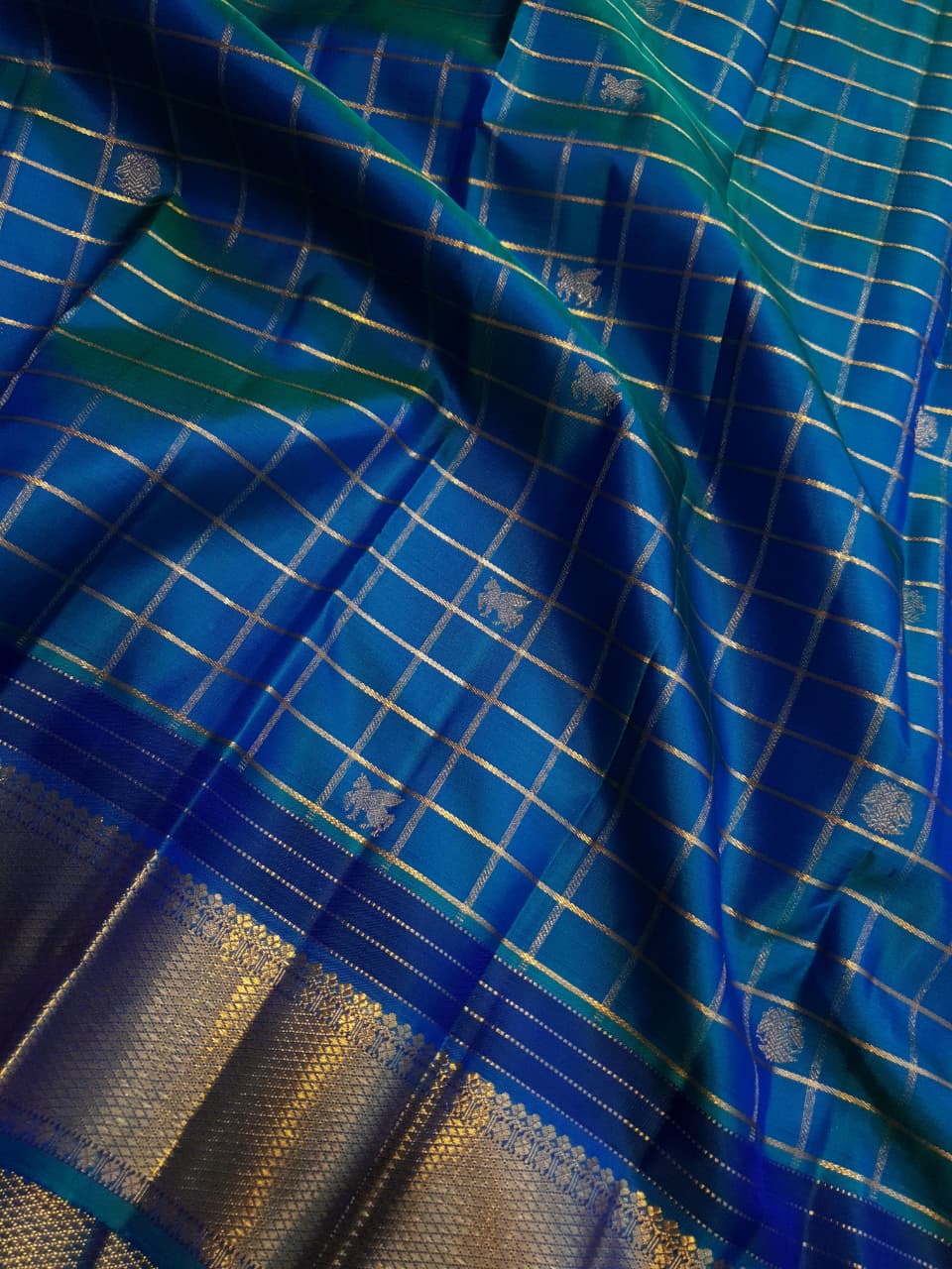 Peacock Blue Kanchipuram Handloom 3G Gold Pattu Silk Saree