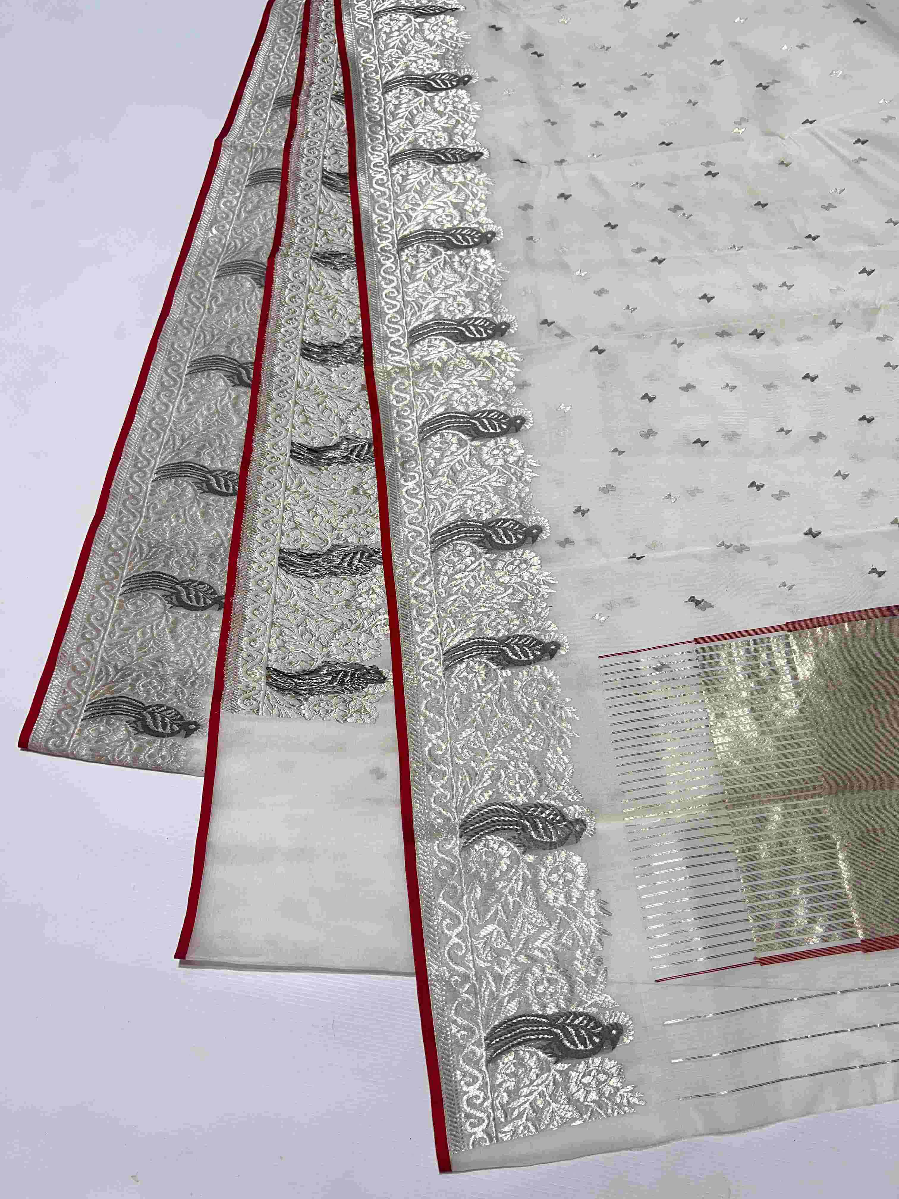 Pearl White Chanderi Handloom Katan Silk Meenakari Saree