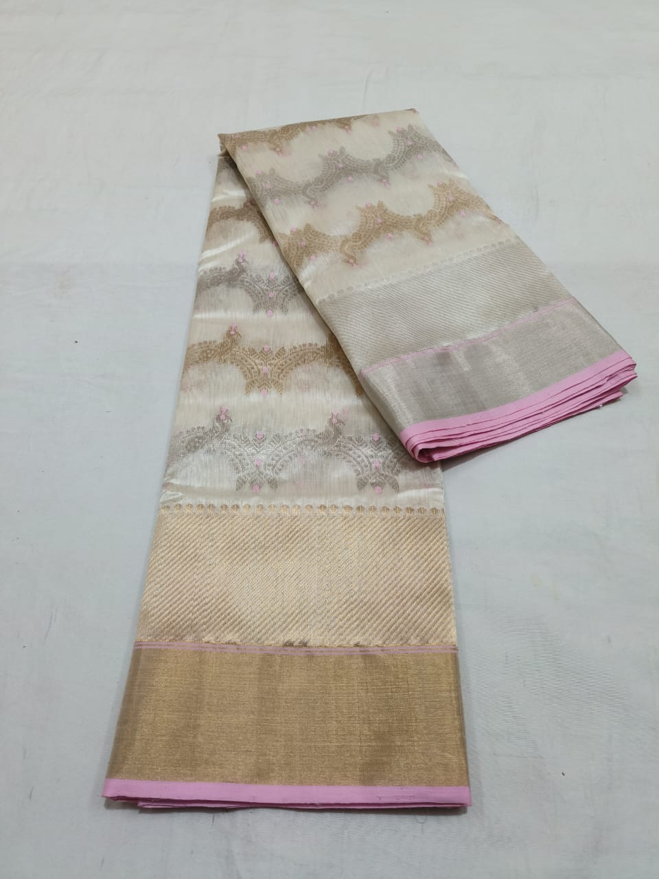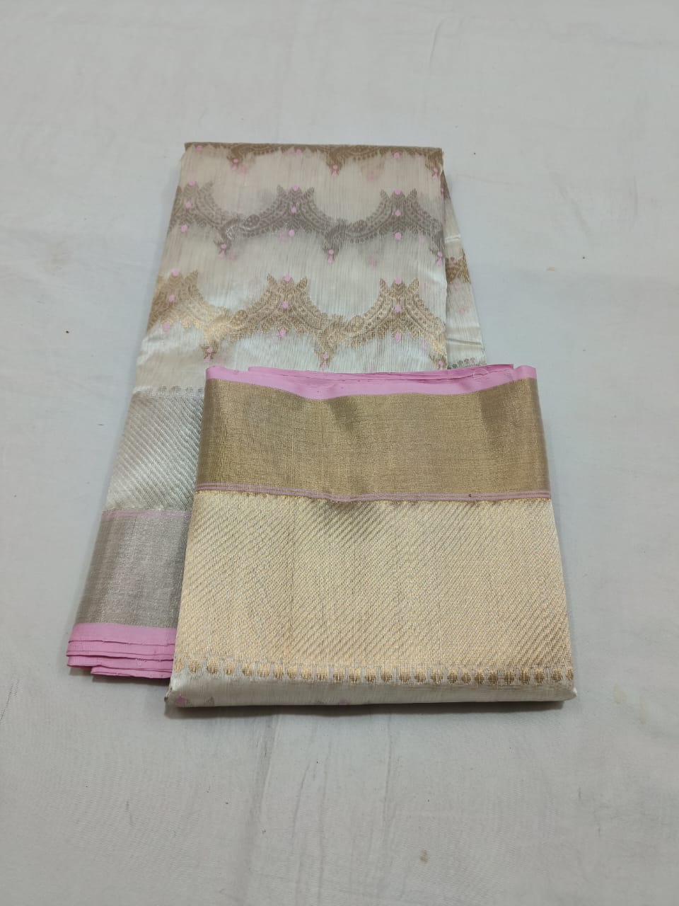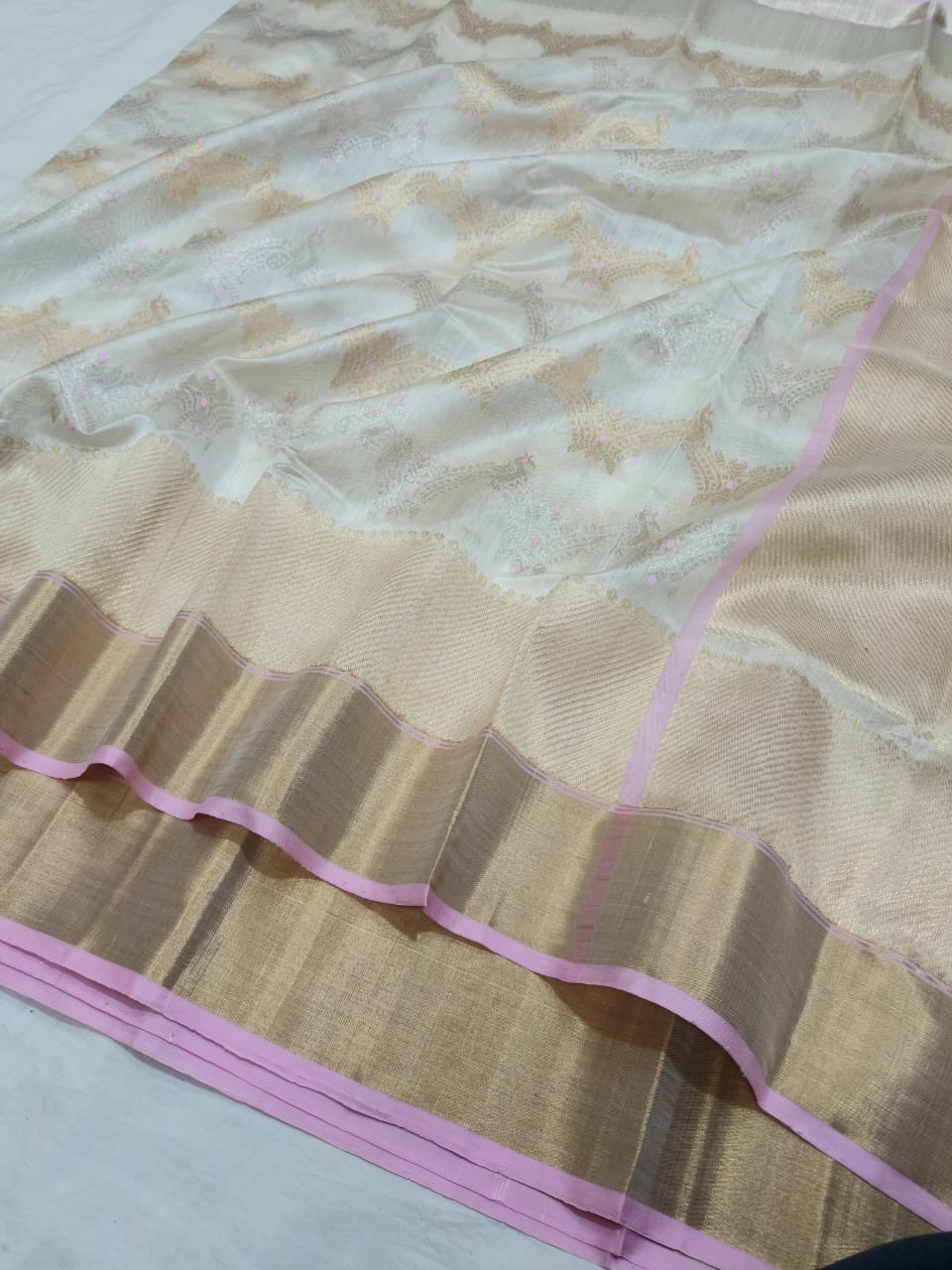 Pearl White Chanderi Handloom Pattu Silk Meenakari Saree