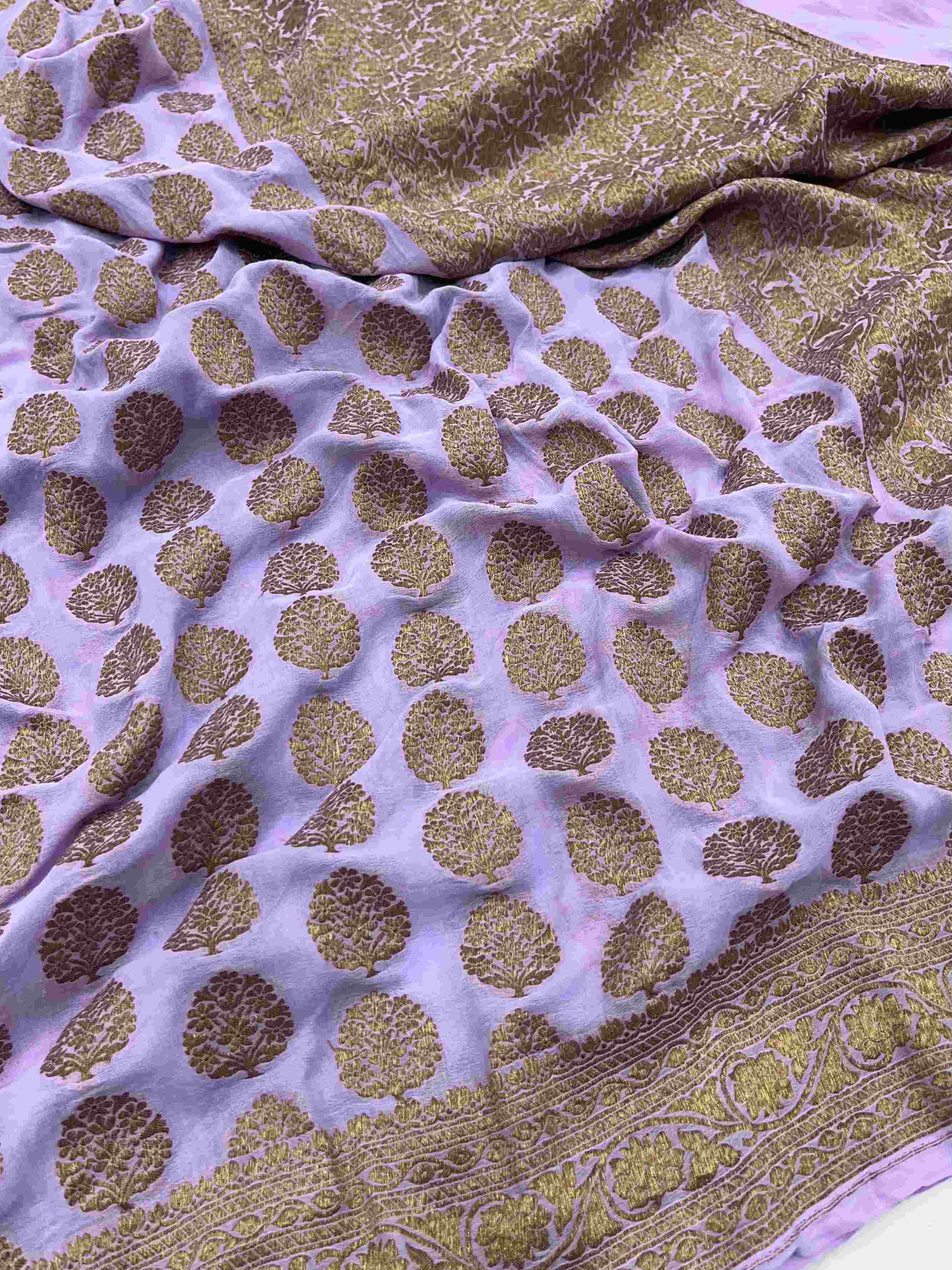 Purple Banarasi Handloom Gold Zari Bandhani Georgette Silk Saree