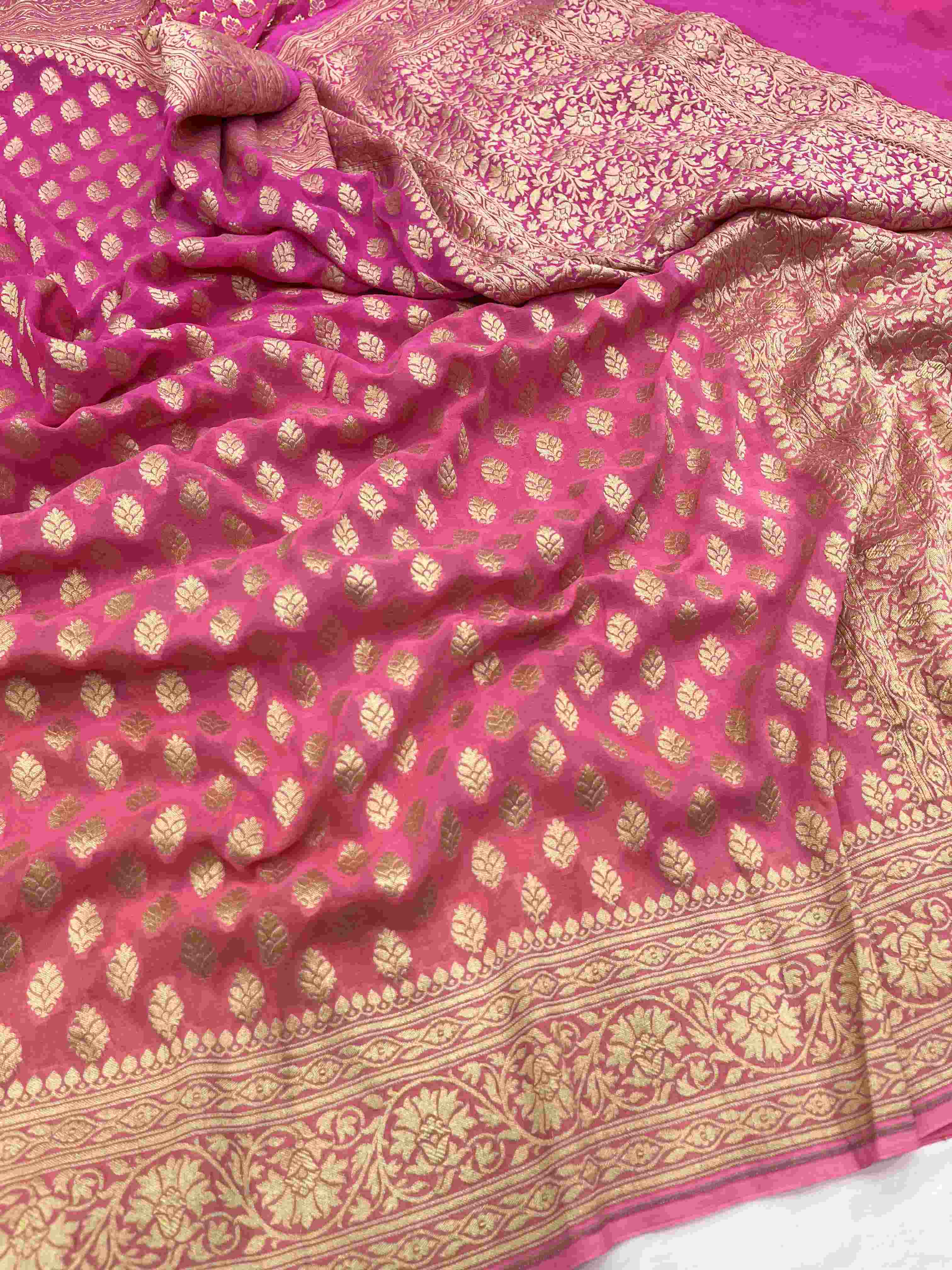Hot Pink Banarasi Handloom Exquisite Rangkaat Georgette Silk Saree