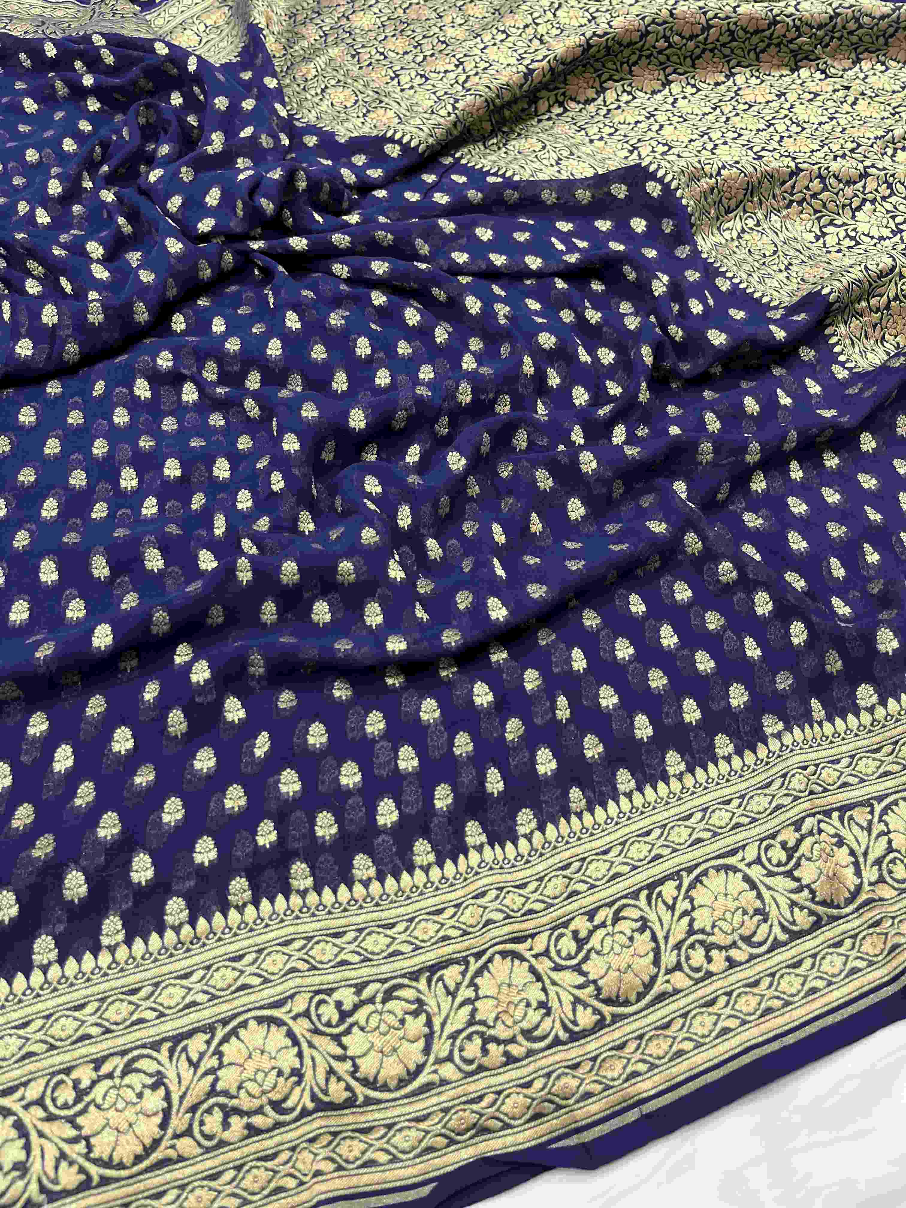 Midnight Blue Banarasi Handloom Water Zari Georgette Silk Saree