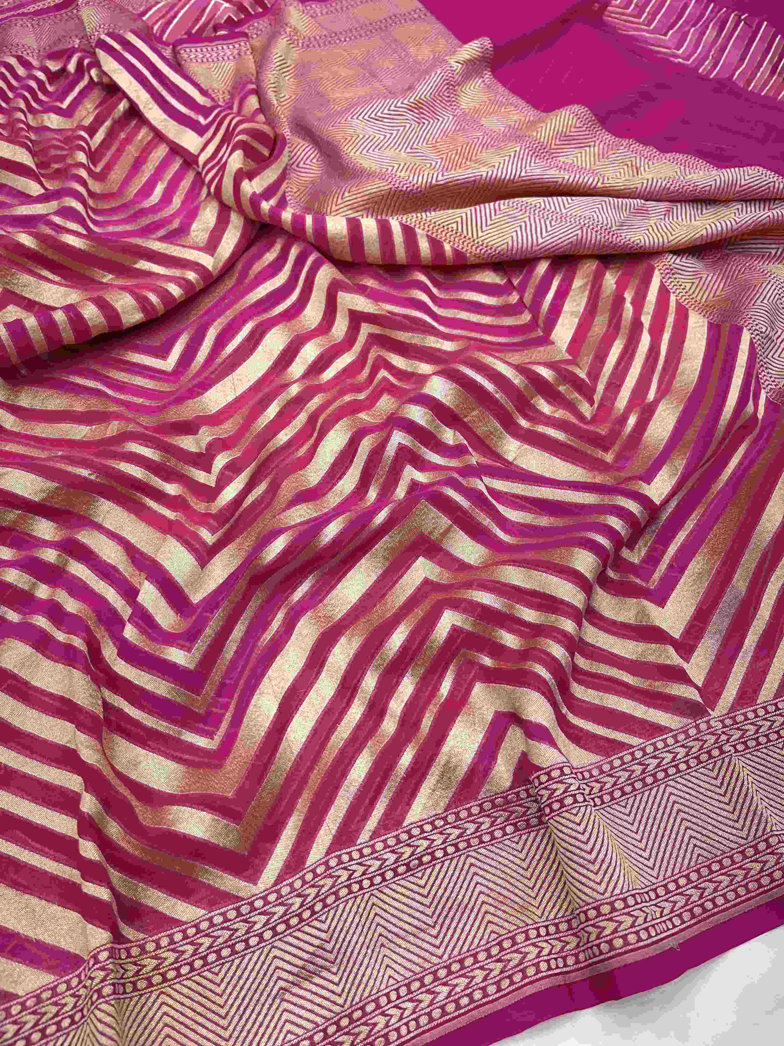 Hot Pink Banarasi Handloom Water Zari Georgette Silk Saree