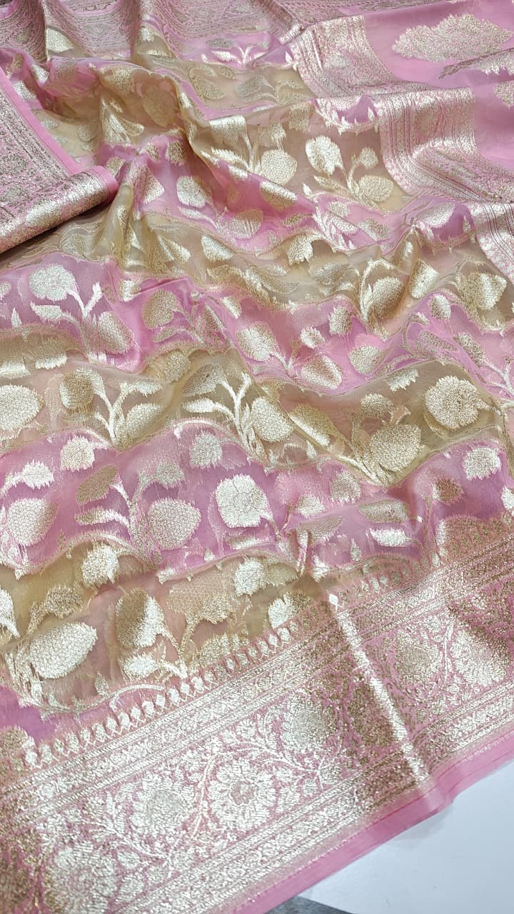 Onion Pink Banarasi Handloom Rangkat Kora Tissue Silk Saree