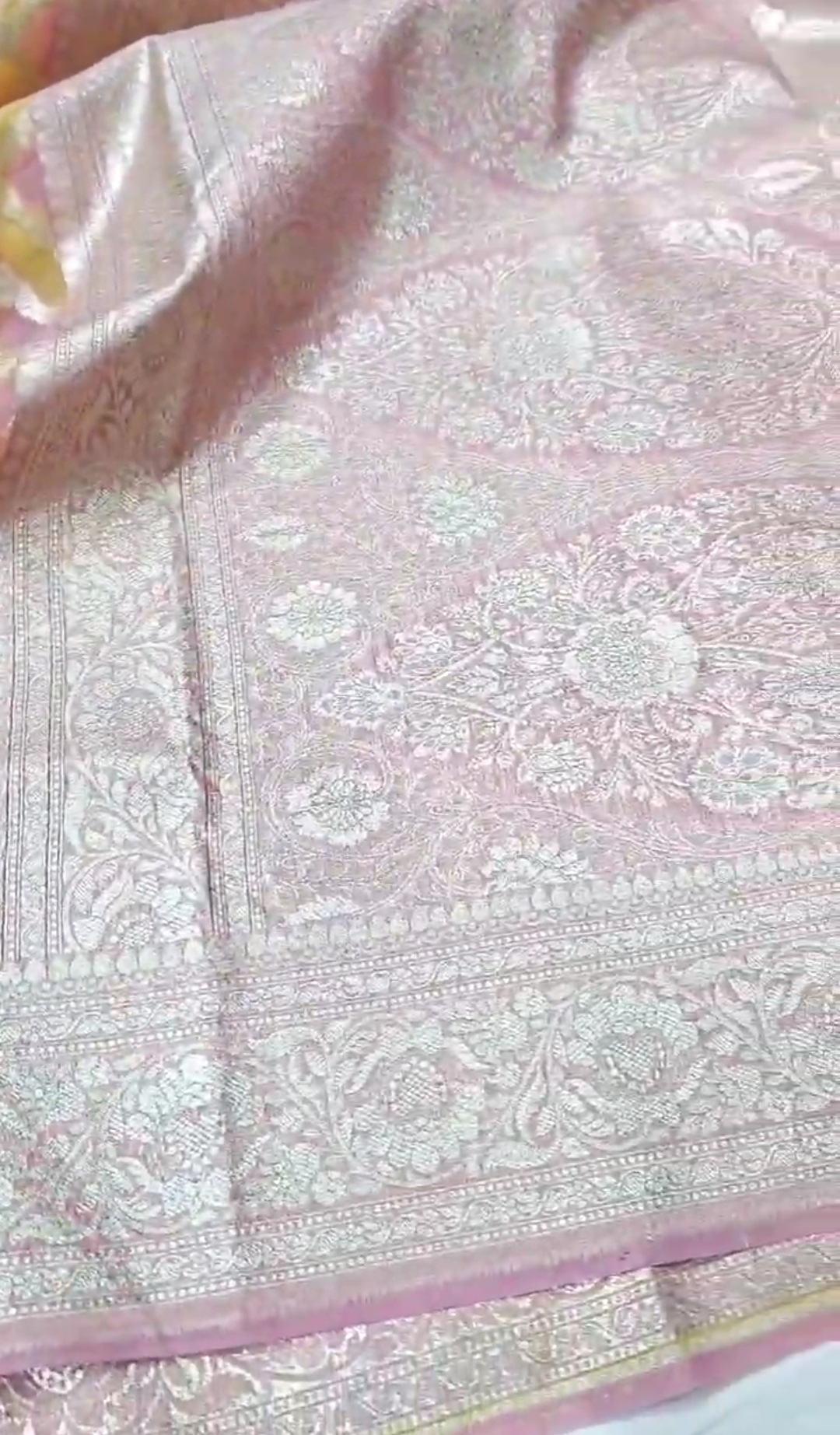 Onion Pink Banarasi Handloom Rangkat Kora Tissue Silk Saree