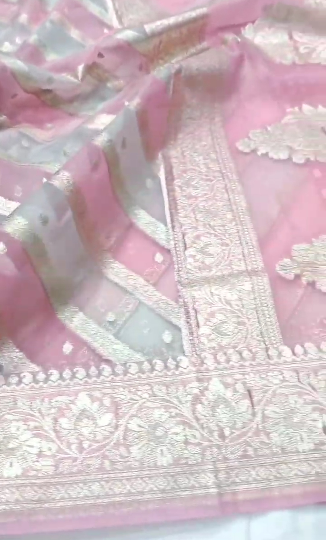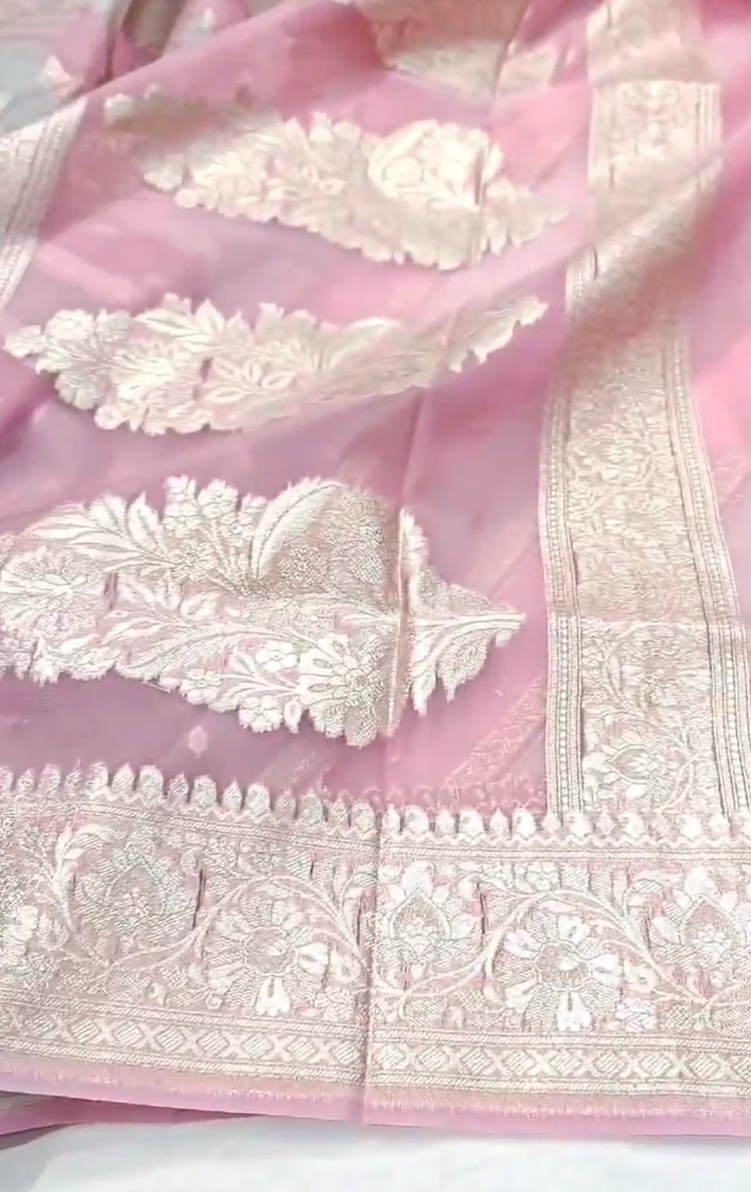 Rose Banarasi Handloom Kora Organza Silk Saree