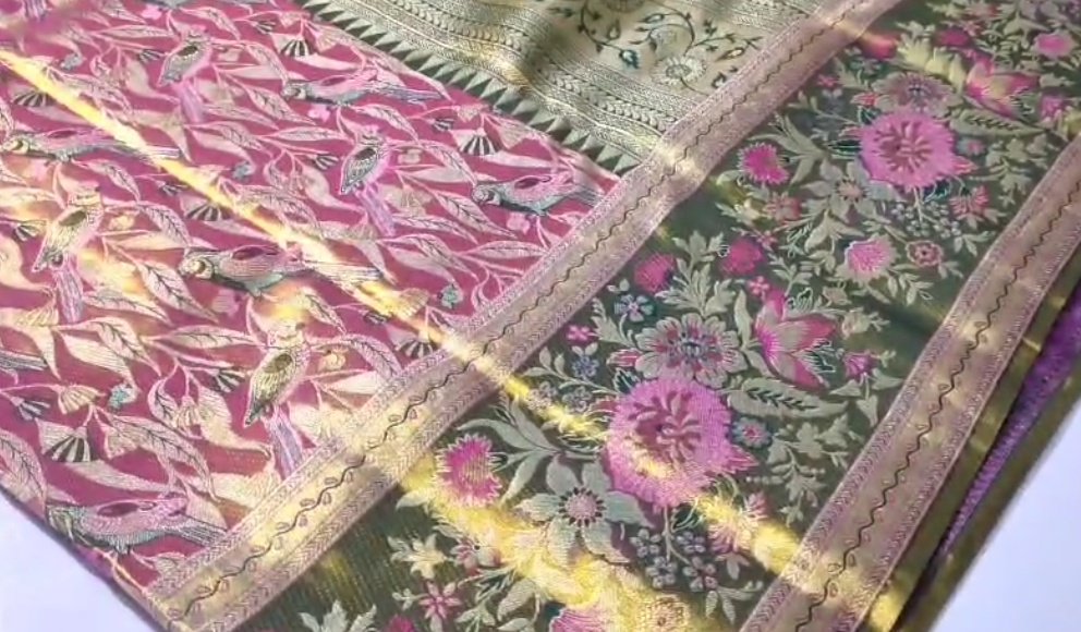 BirdsDesign, 4D, Meenakari, Silver Zari, Gold Zari