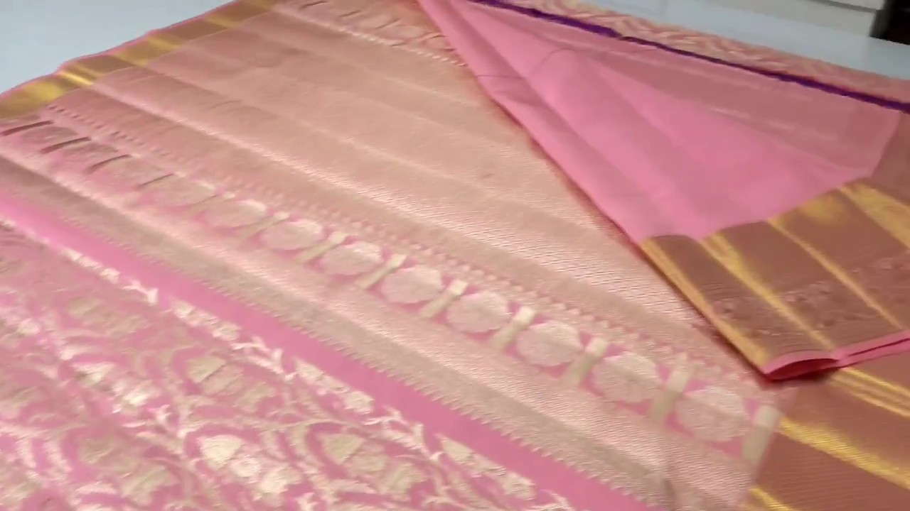 Pink Kanchipuram Handloom Tissue Brocade Silk Saree