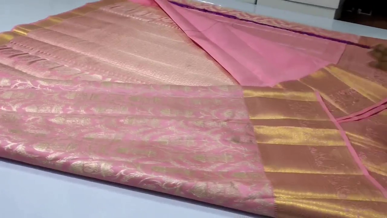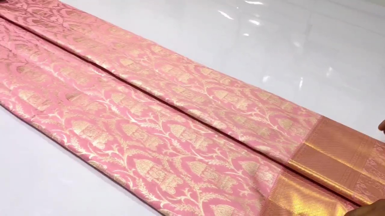 Onion Pink Kanchipuram Handloom Tissue Brocade Silk Saree