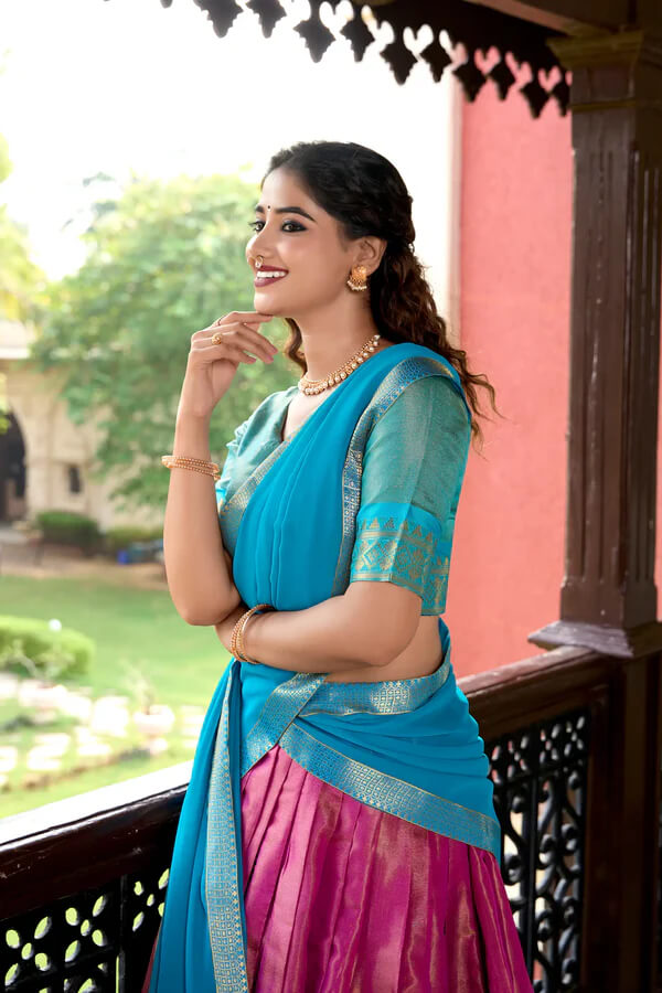 Pink lehenga choli, Kanchipuram silk lehenga, zari weaving lehenga, silk lehenga, festive outfit, designer lehenga, ethnic wear, traditional lehenga