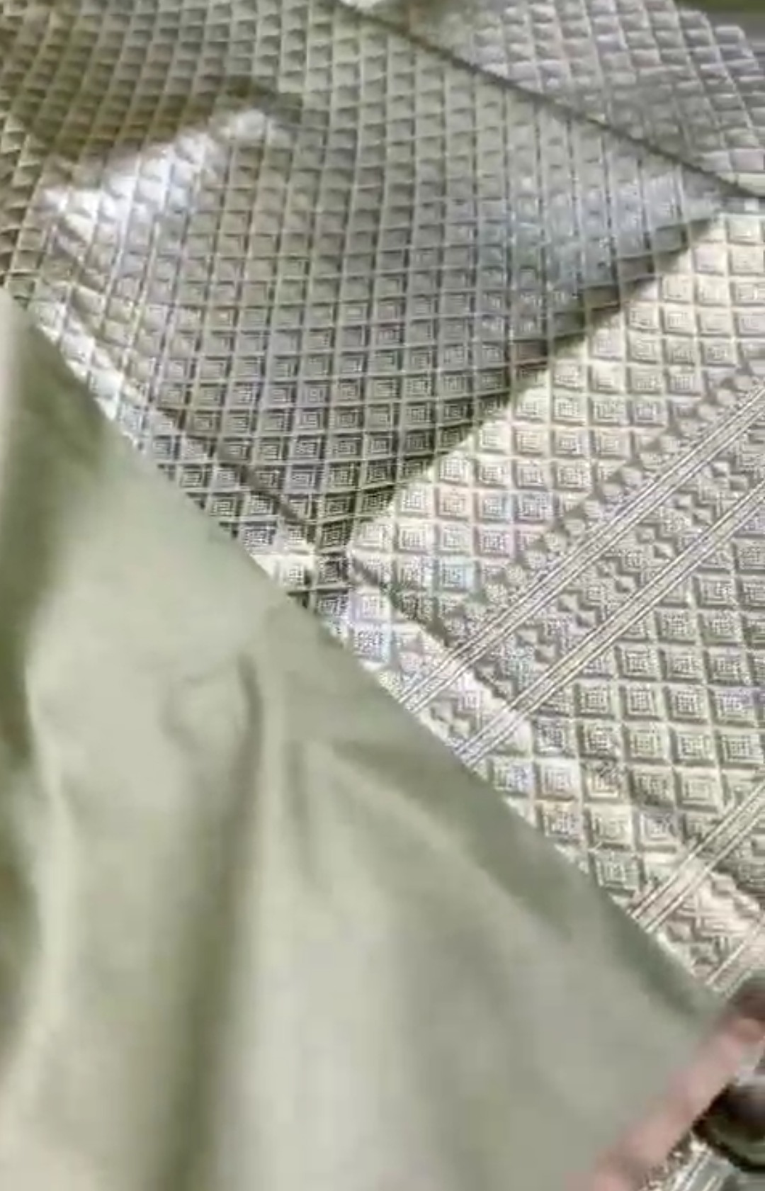 Green Banarasi Satin Katan Silk Swarovski Jangla Saree
