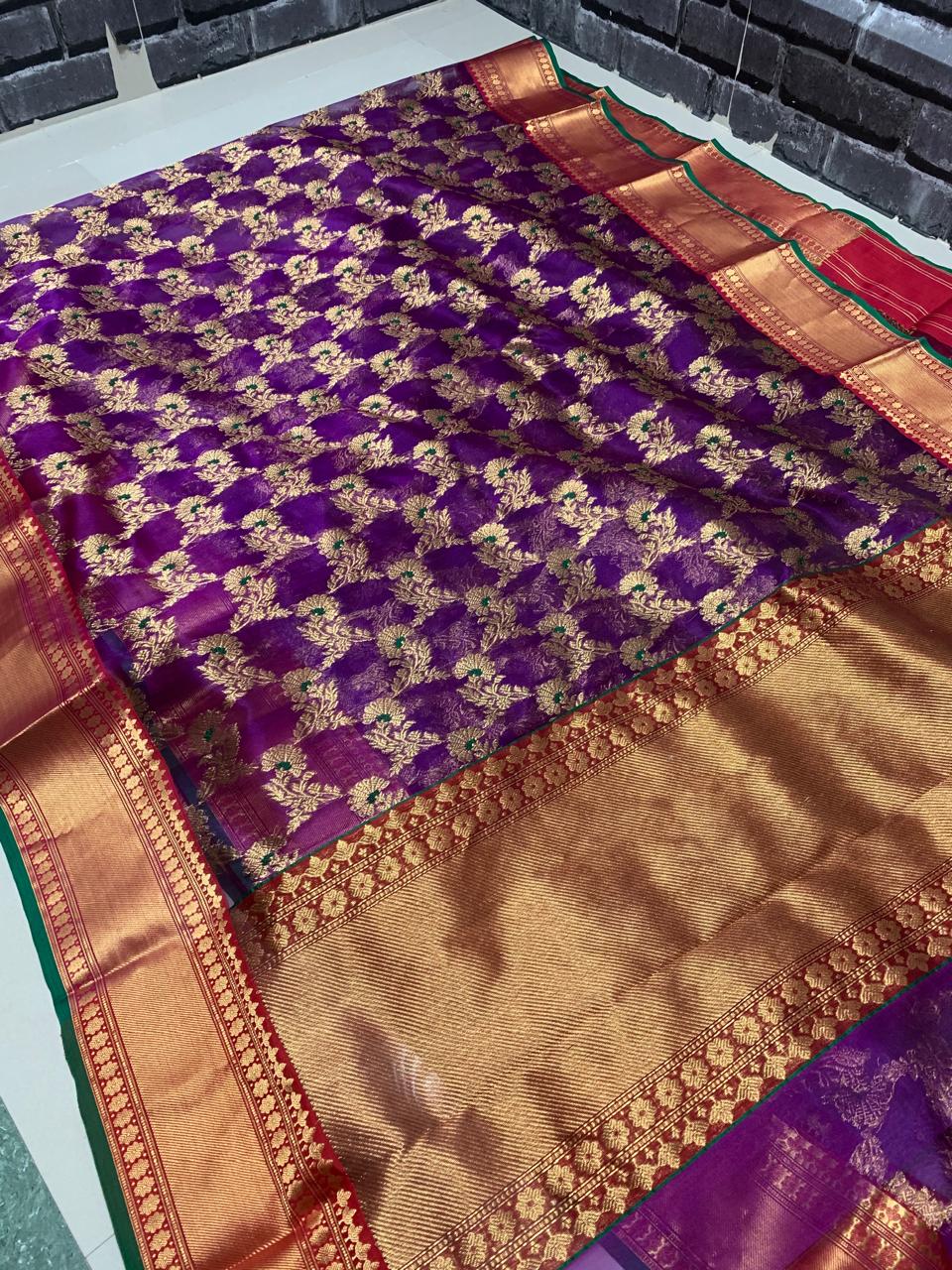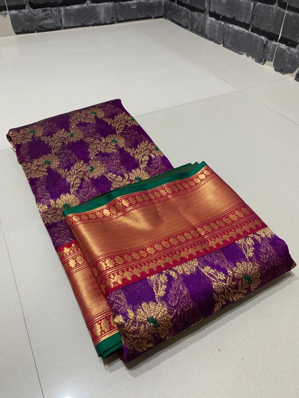Purple Chanderi Handloom Katan Silk Meenakari Saree