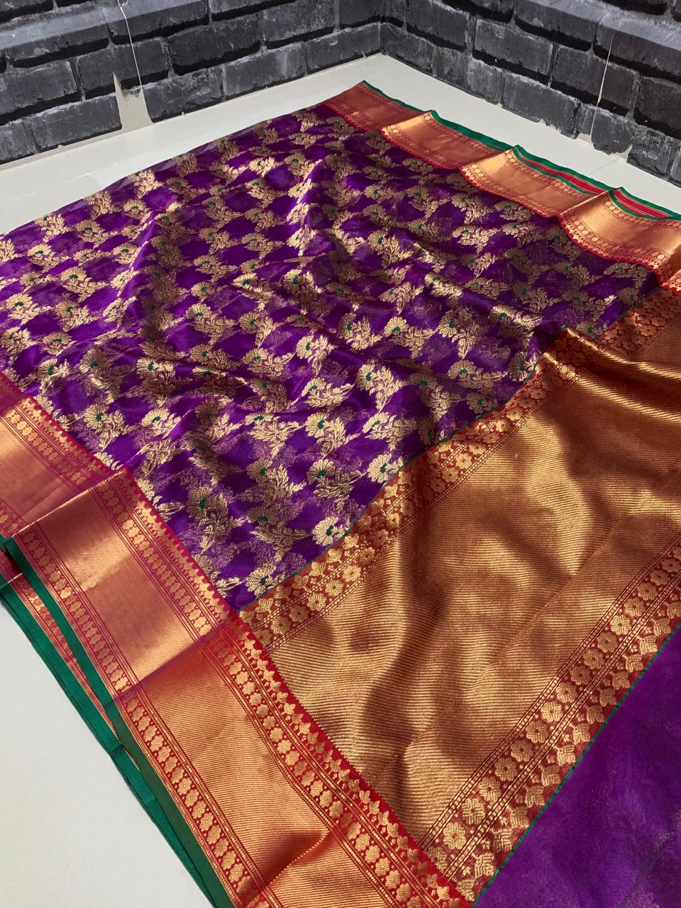 Purple Chanderi Handloom Katan Silk Meenakari Nakshi Saree