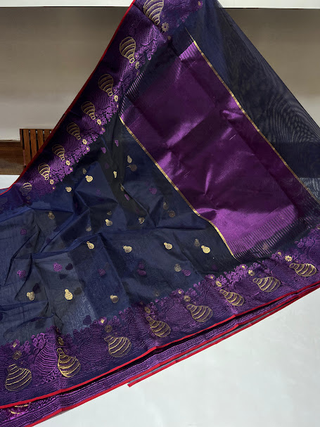 Midnight Blue Chanderi Handloom Katan Silk Meenakari Saree