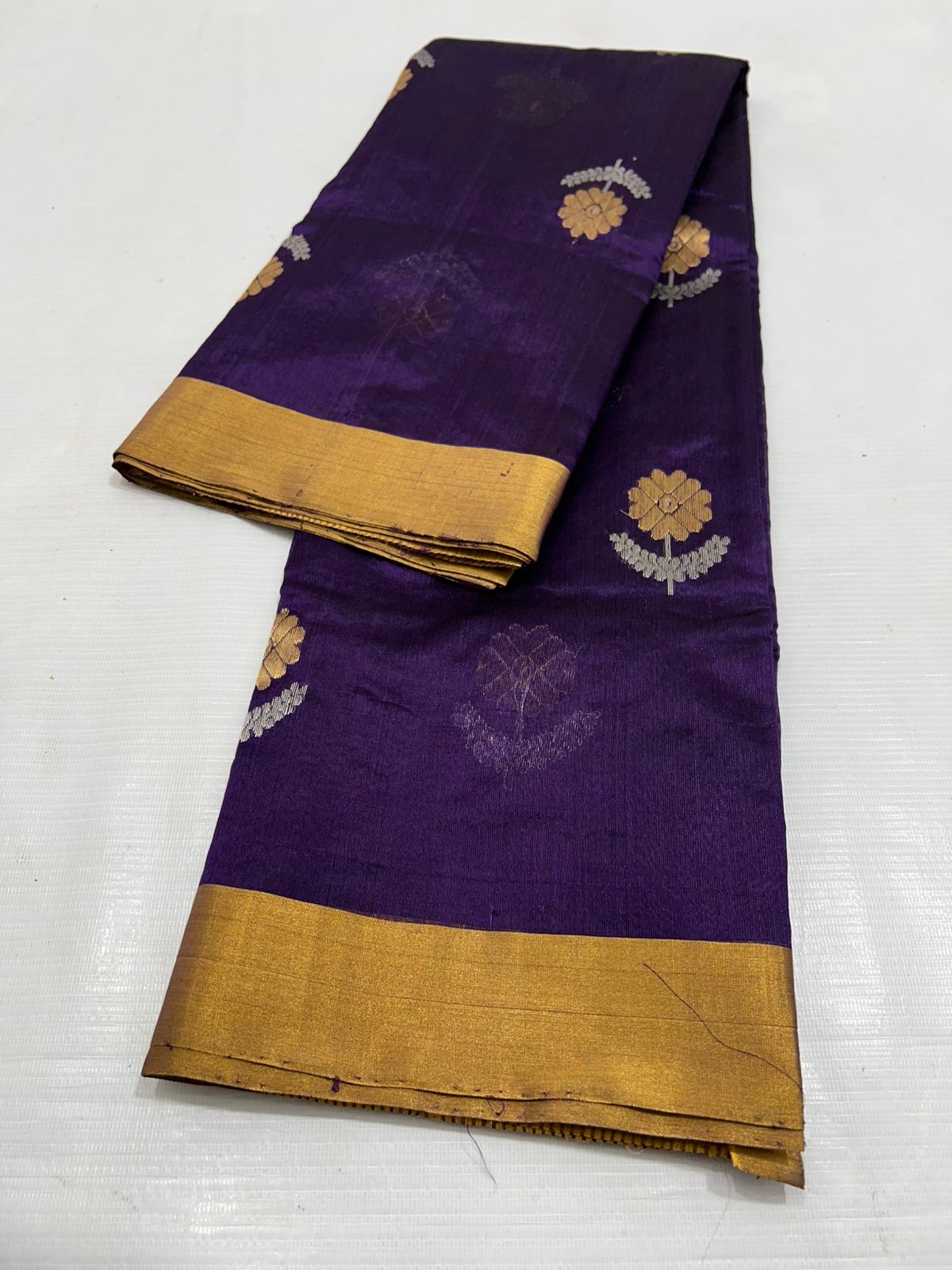 Dark Purple Chanderi Handloom Pattu Silk Handwork Saree