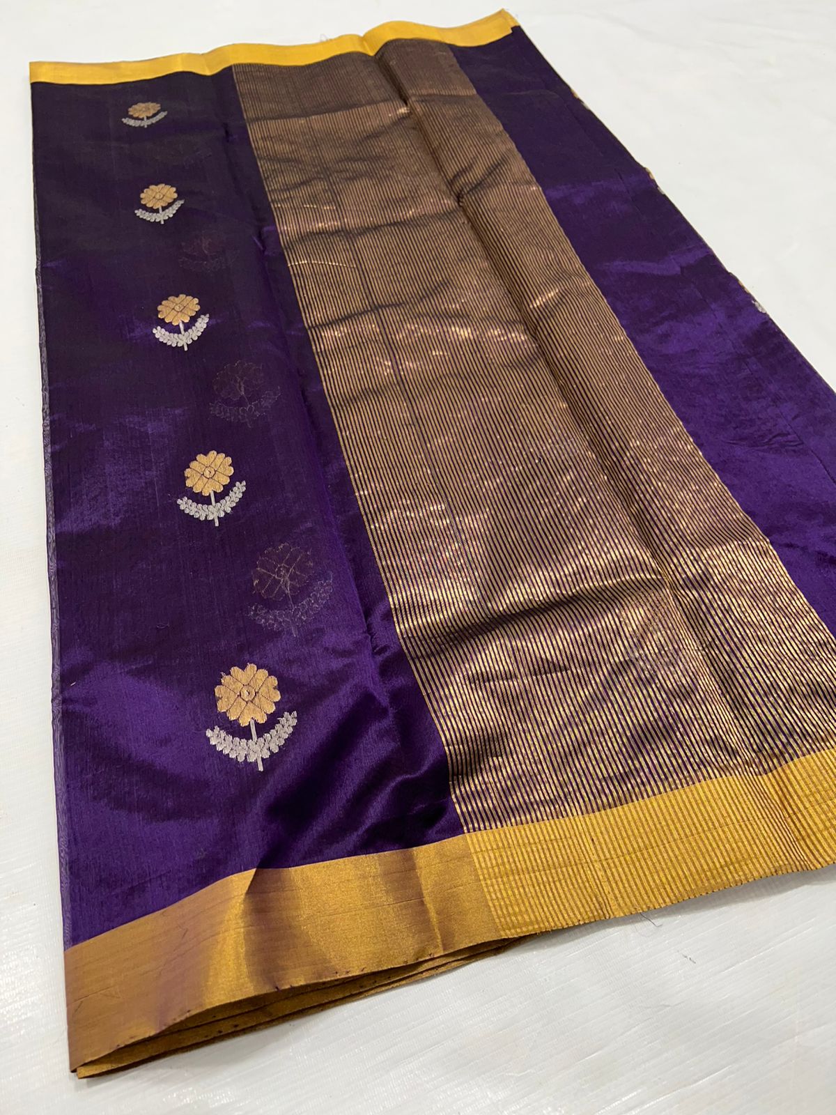Purple Chanderi Handloom Pattu Silk Meenakari Saree