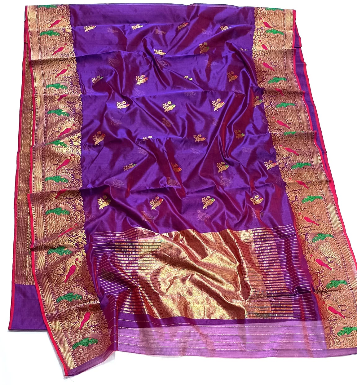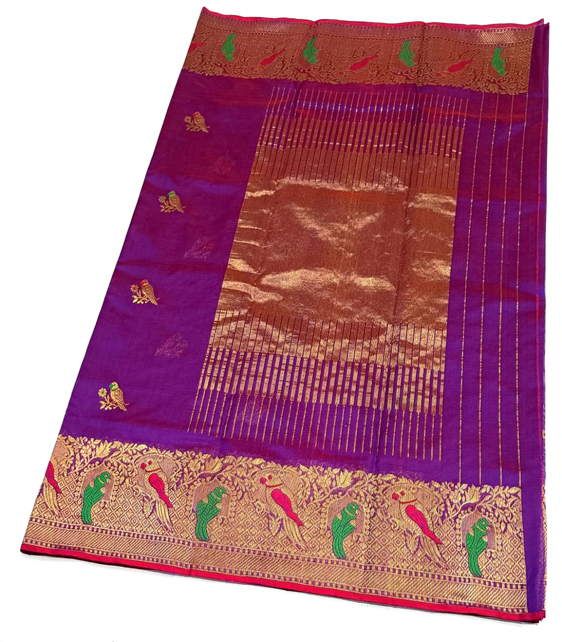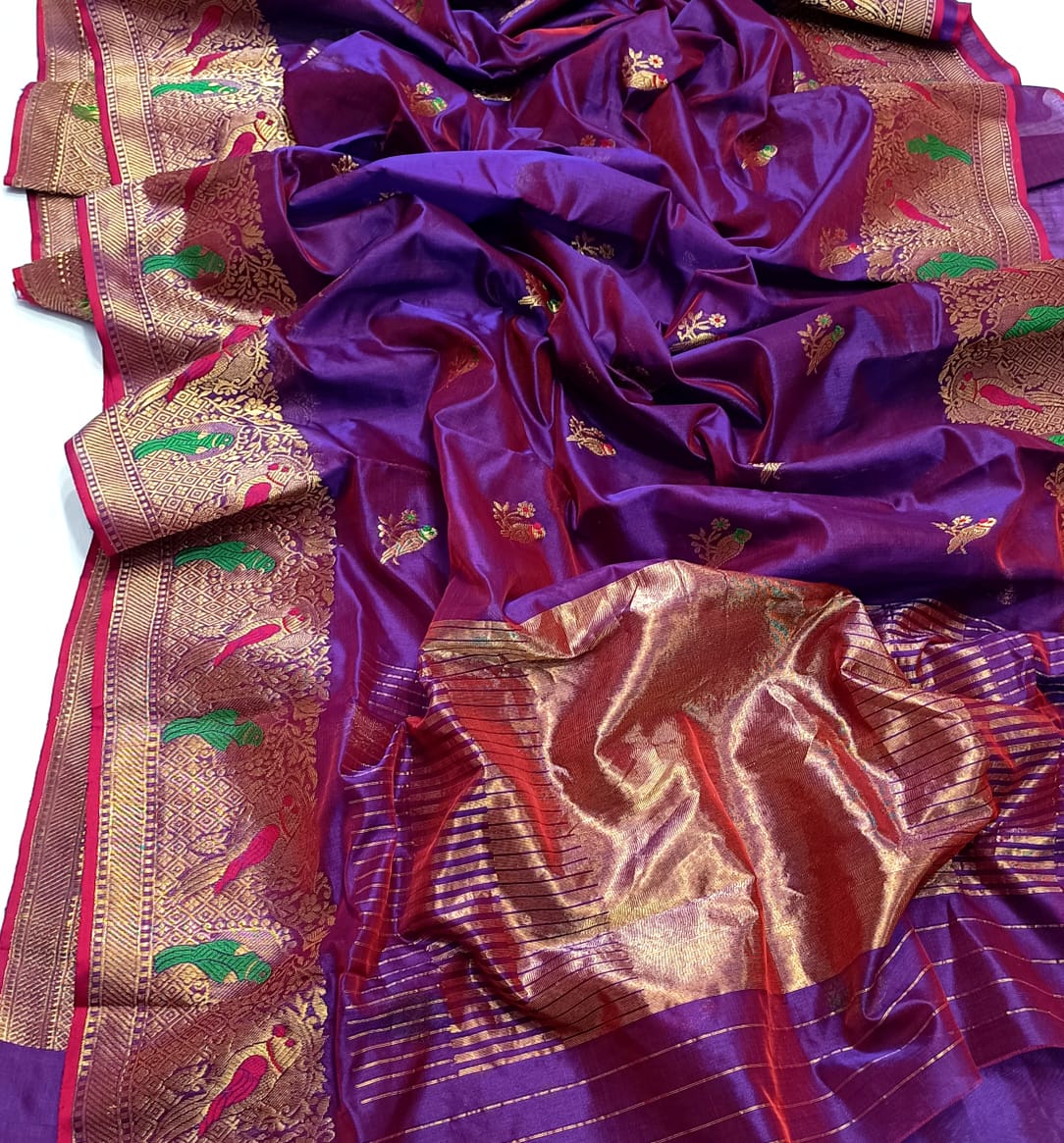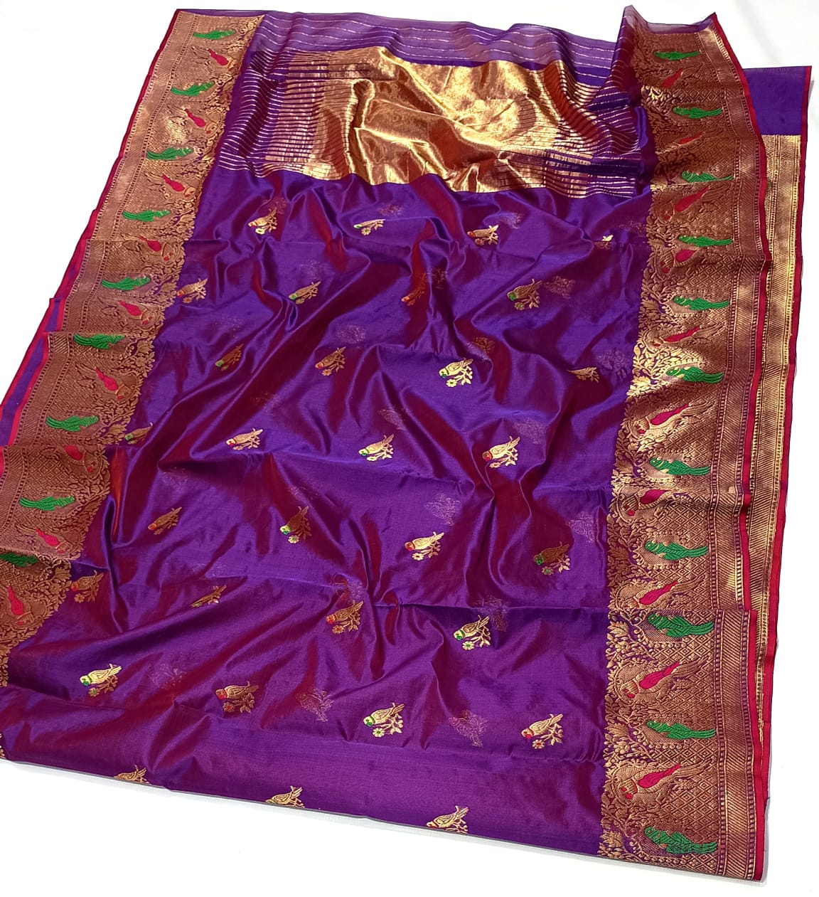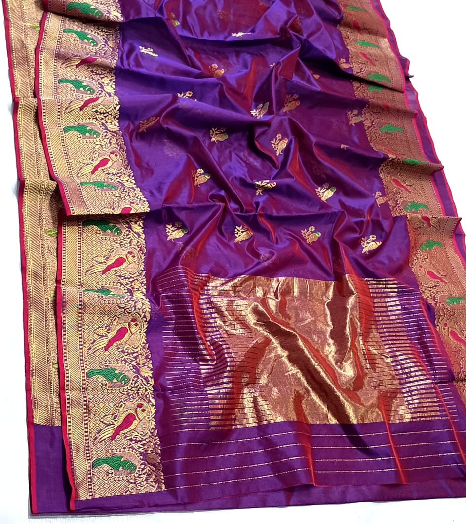 Purple Chanderi Handloom Pattu Silk Meenakari Saree