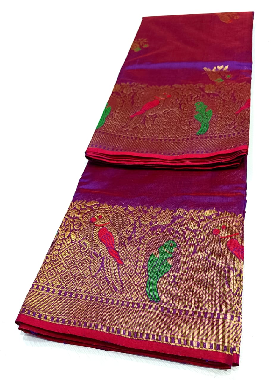 Dual Tone Purple Chanderi Handloom Pattu Silk Saree