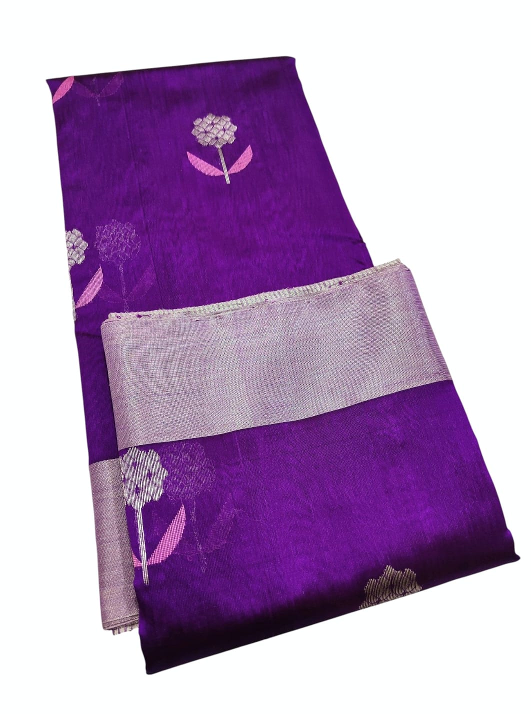 Purple Chanderi Handloom Pattu Silk Meenakari Saree