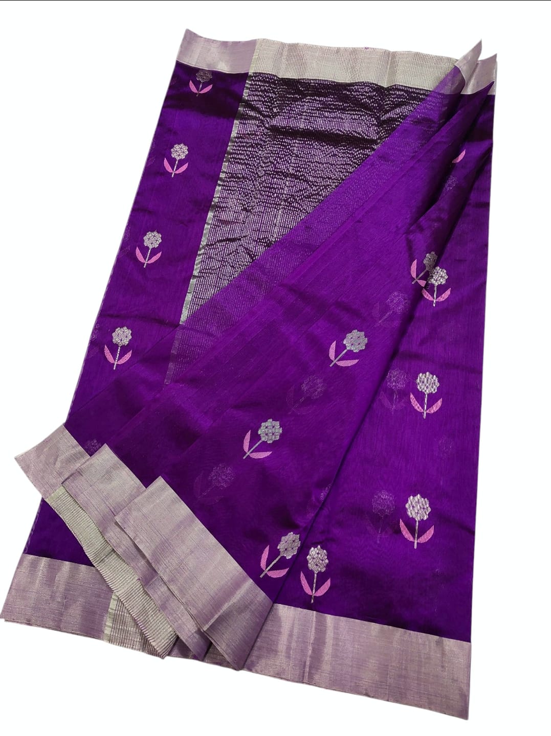 Purple Chanderi Handloom Pattu Silk Eknal Buttas Saree