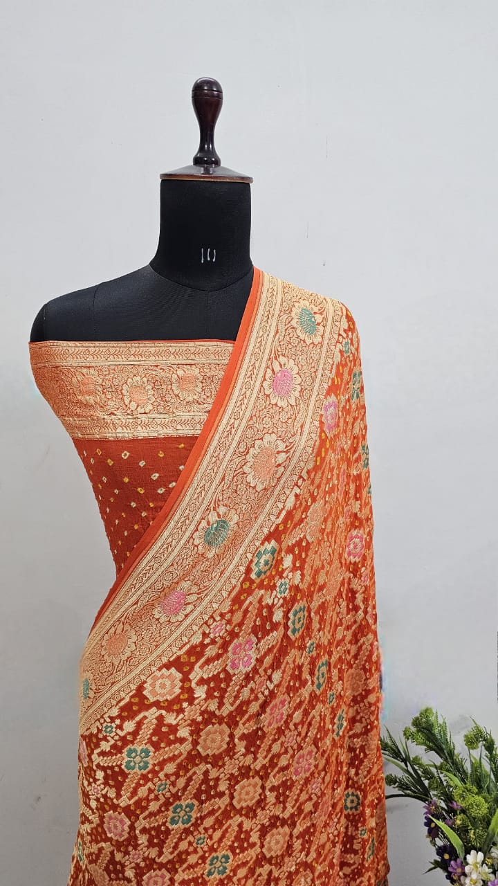 Banarasi Handloom Georgette Silk Party Saree, Banarasi Handloom Gold Zari Georgette Silk Saree, Banarasi Handloom Gold Zari Bandhani Georgette Silk Saree