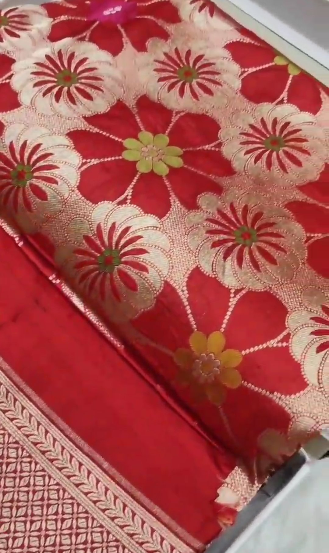 Red Banarasi Handloom Katan Silk Meenakari Saree