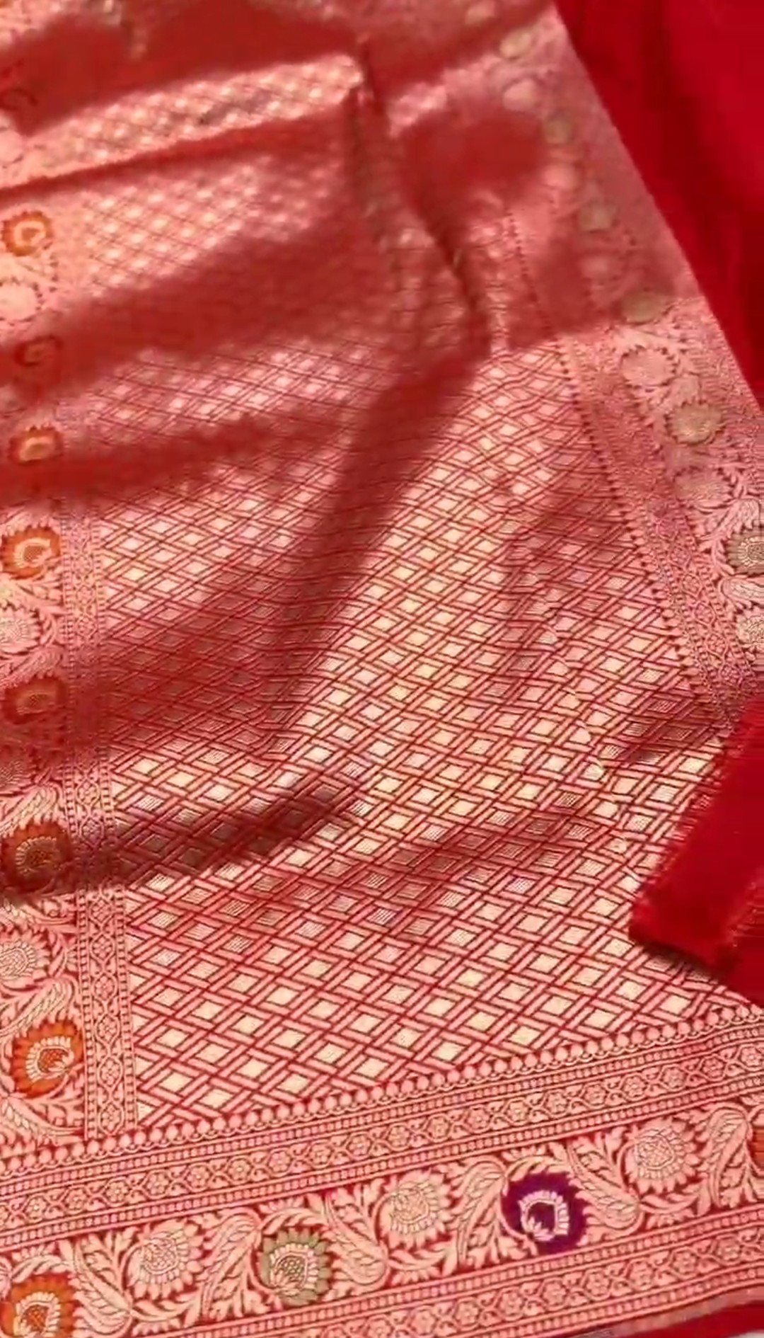 Red Banarasi Handloom Katan Silk Rangkaat Meenakari Saree
