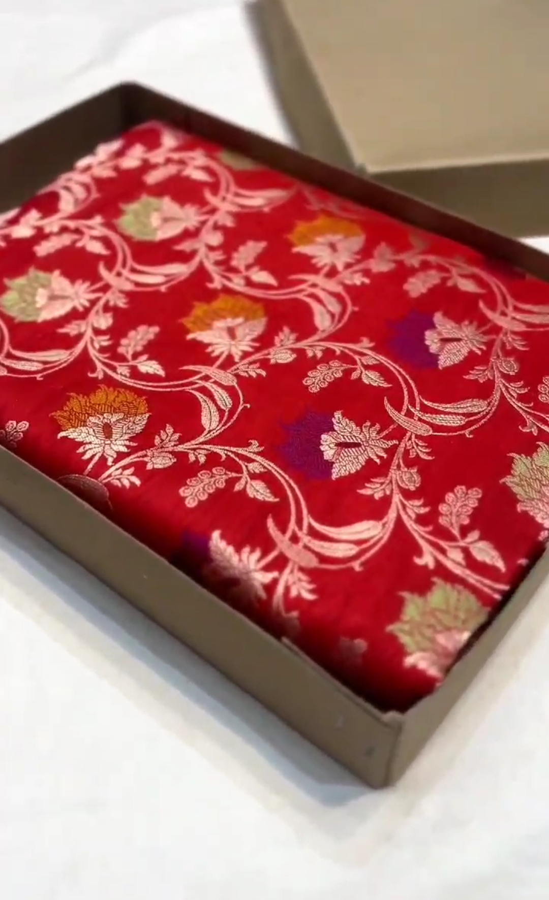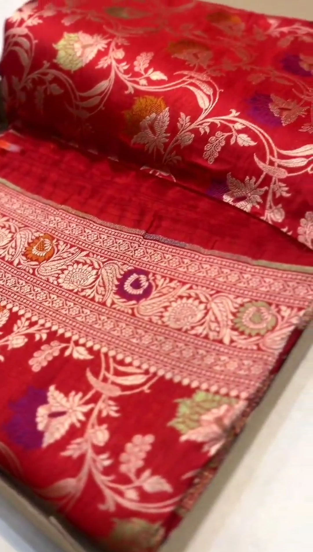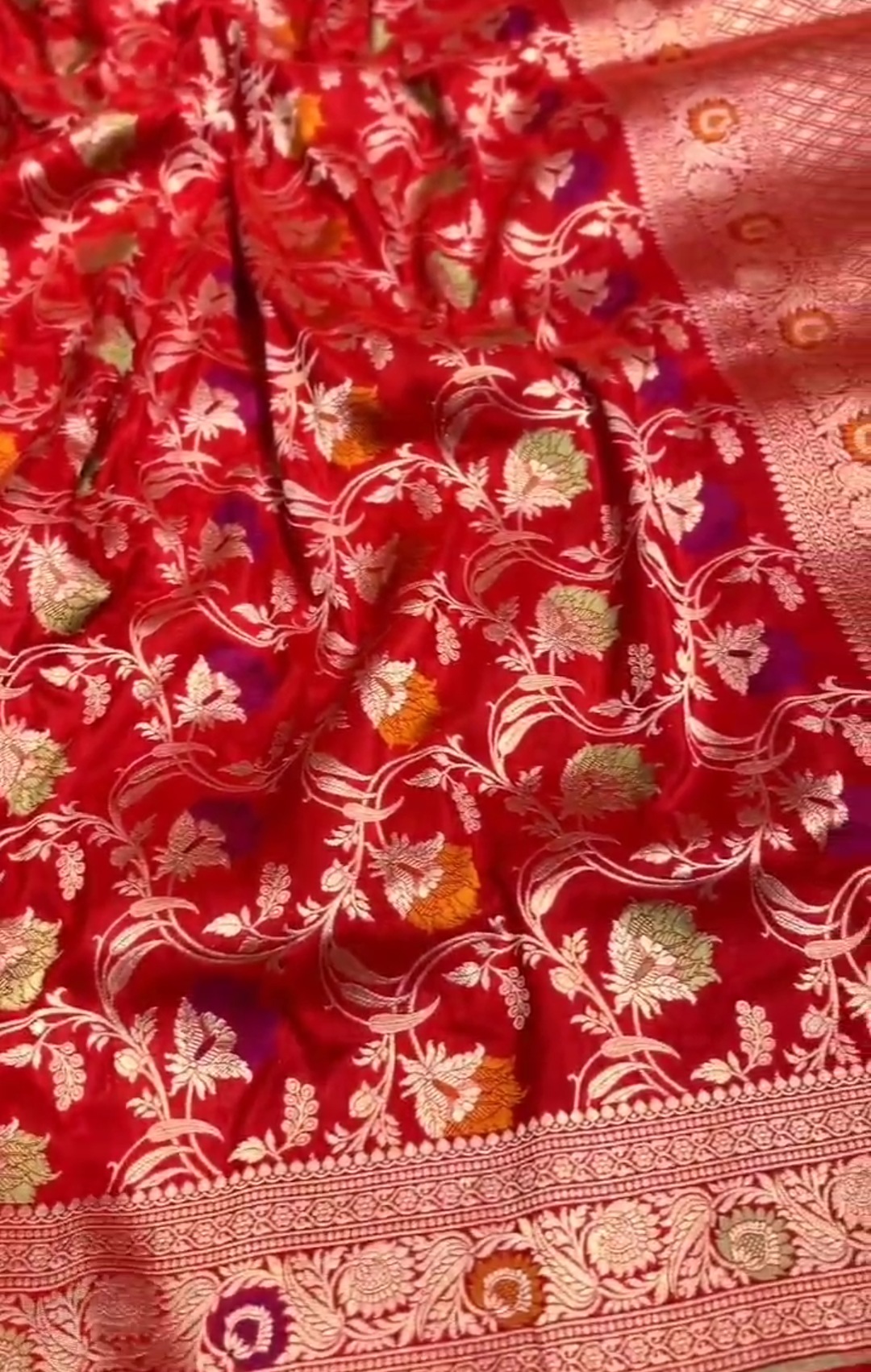 Red Banarasi Handloom Katan Silk Meenakari Saree