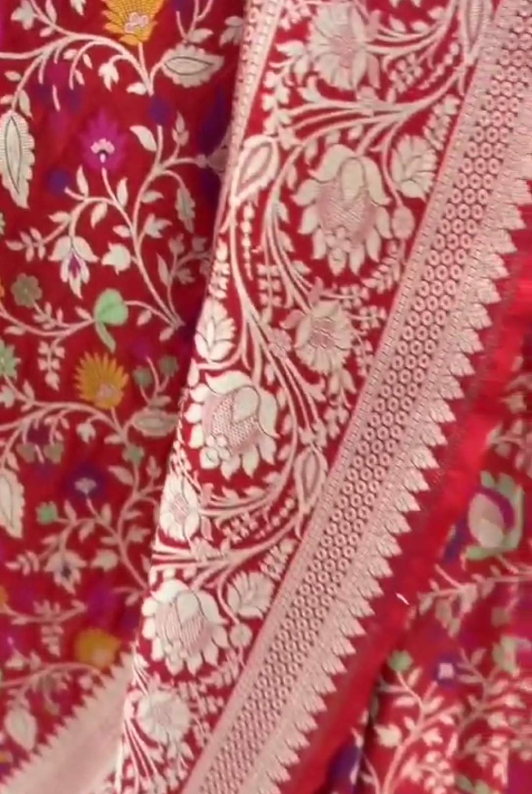 Red Banarasi Handloom Katan Silk Tilfi Meenakari Saree