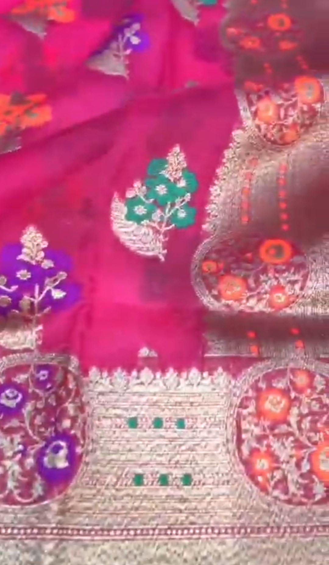 Red Banarasi Handloom Kora Organza Silk Meenakari Saree