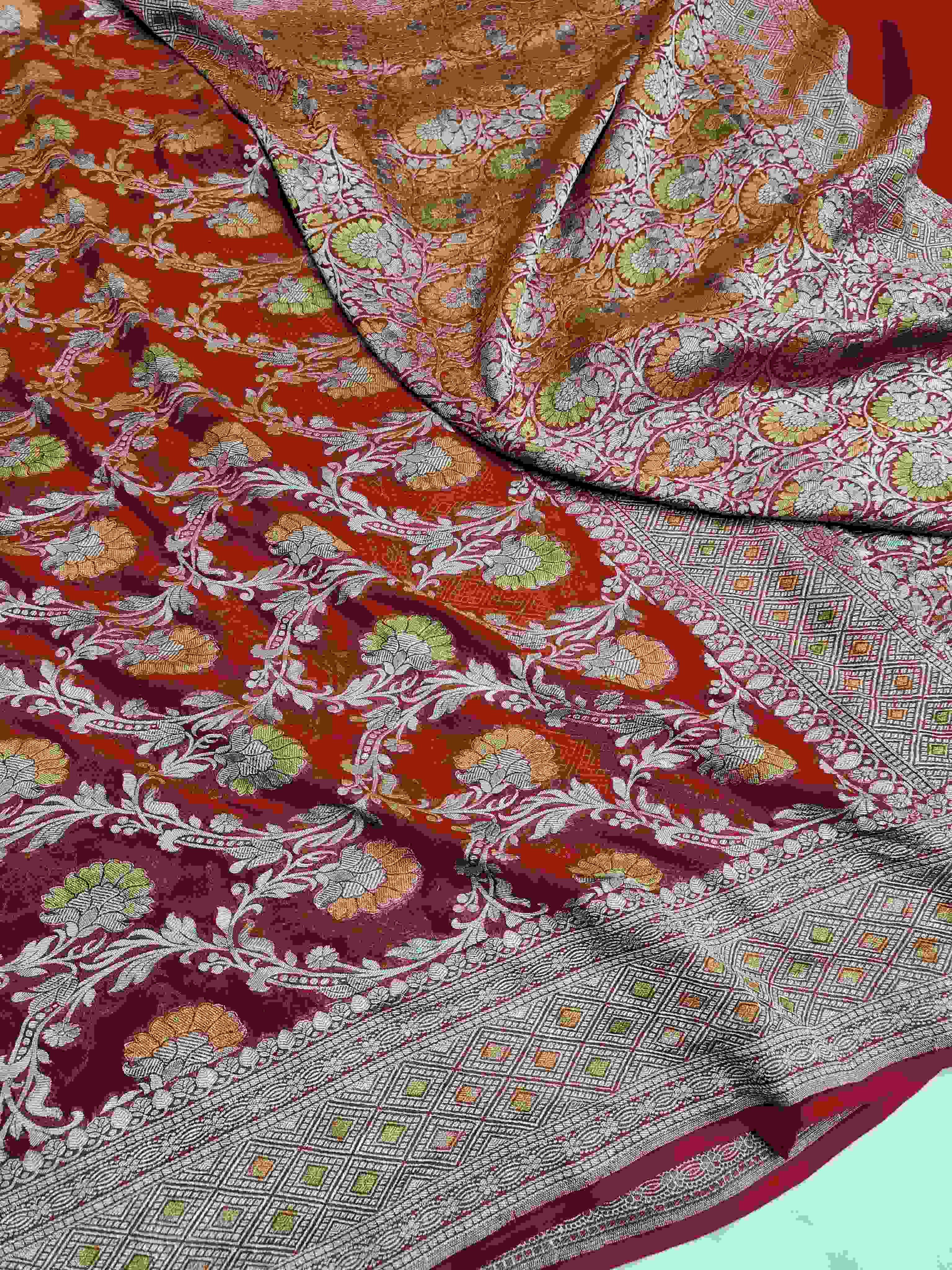 Red Banarasi Handloom Antique Zari Georgette Crepe Silk Saree