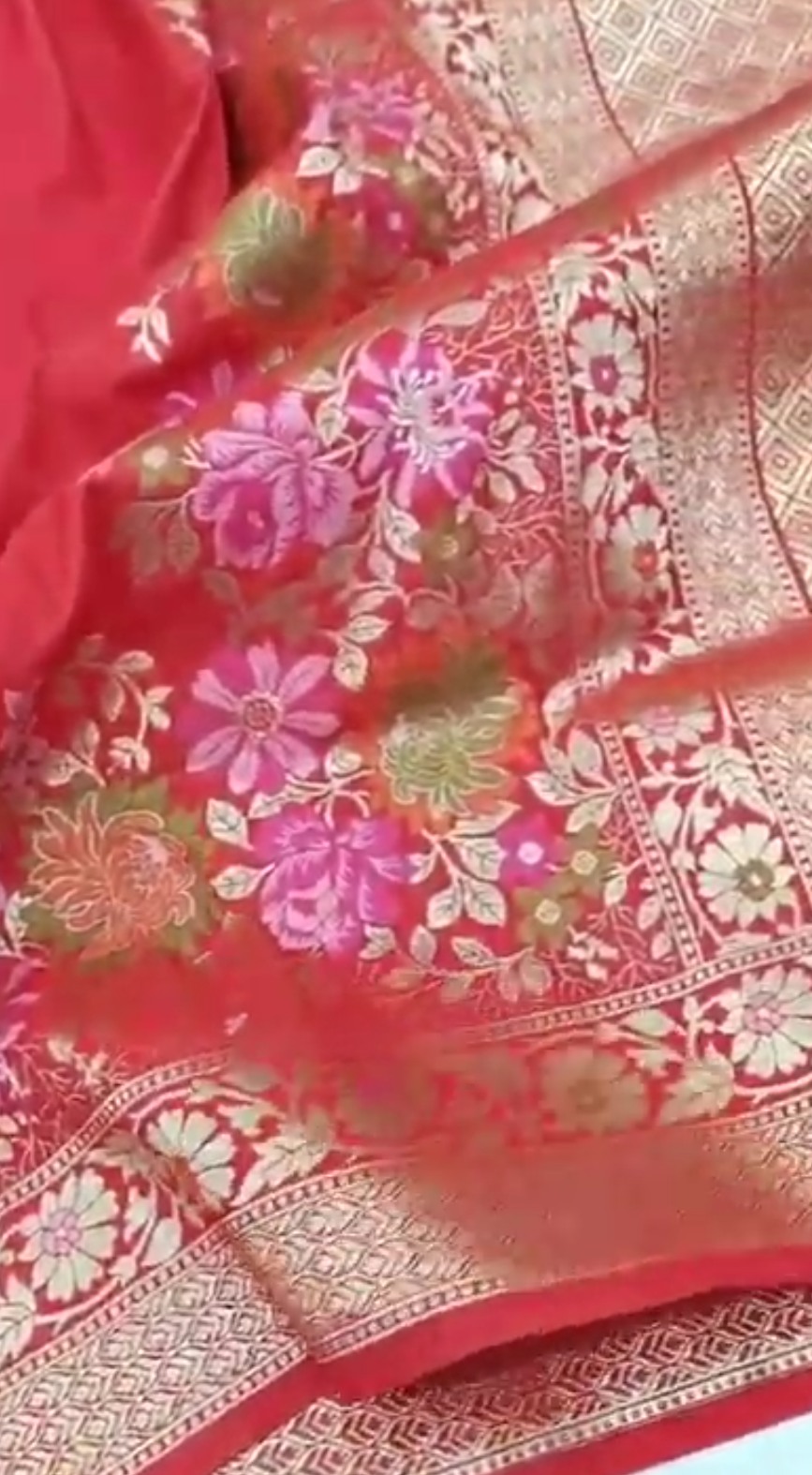 Bright Red Banarasi Soft Katan Silk Tilfi Meenakari Saree