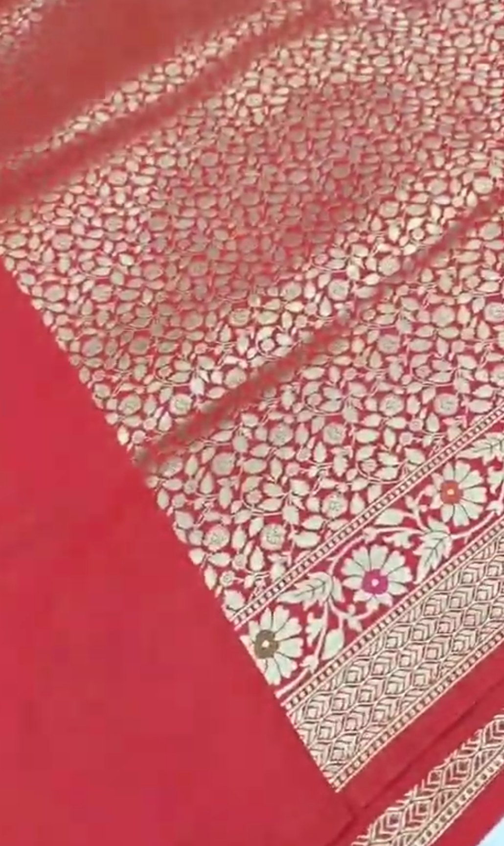 Red Banarasi Semi Katan Silk Tilfi Meenakari Saree