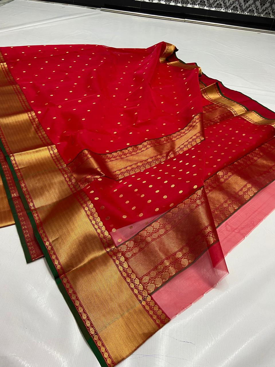 Chilly Red Chanderi Handloom Katan Silk Meenakari Nakshi Saree
