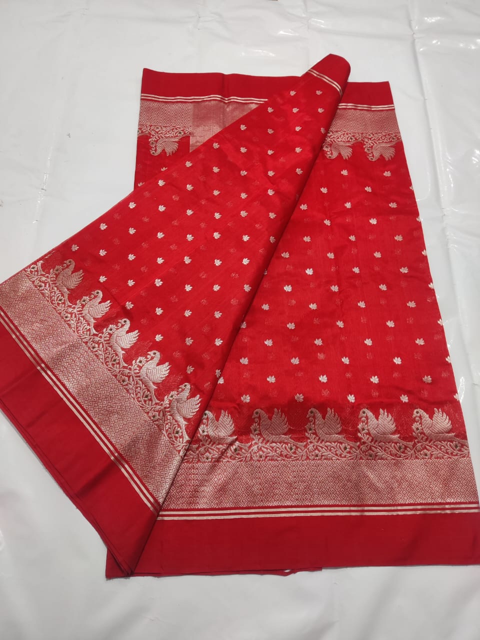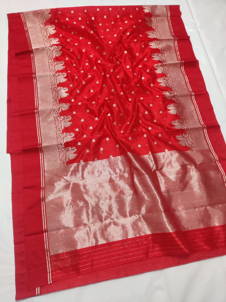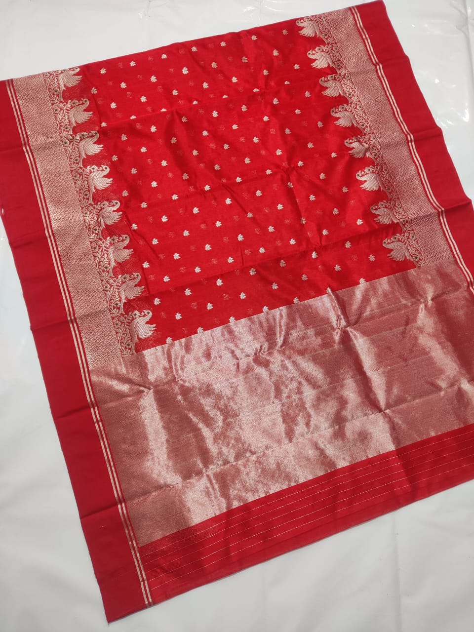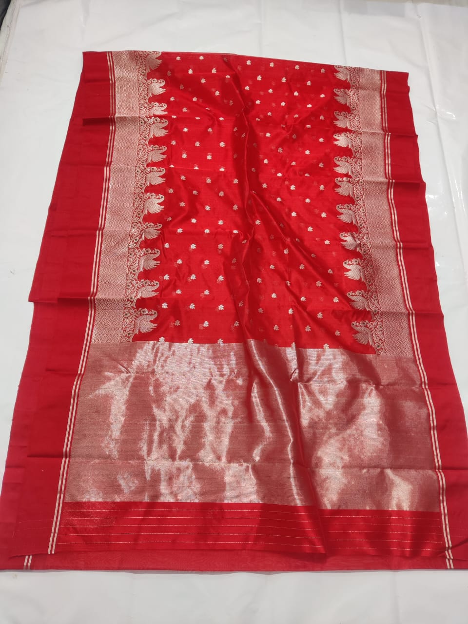 Red Chanderi Handloom Pattu Silk Bridal Saree