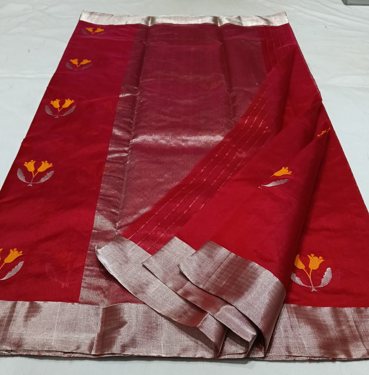 Red Chanderi Handloom Pattu Silk Bridal Saree