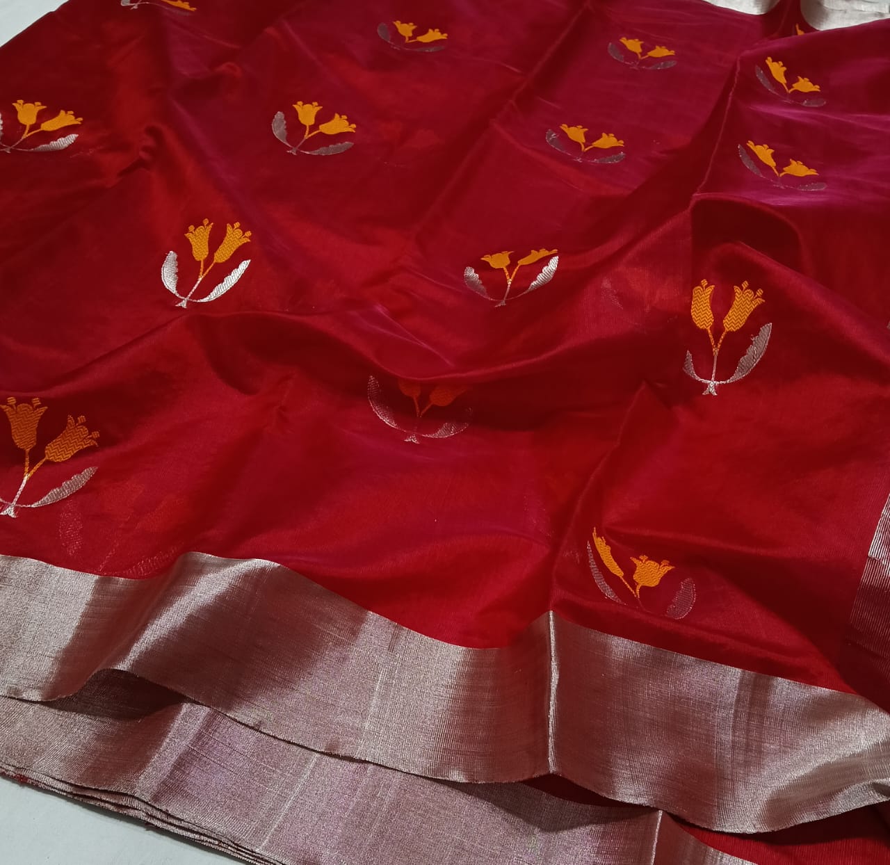Red Chanderi Handloom Pattu Silk Saree
