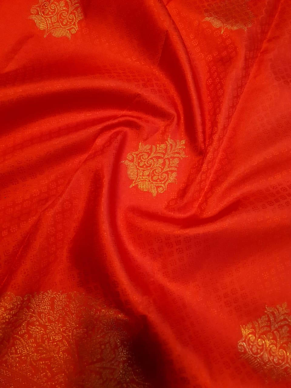 Orange Red Kanchipuram Handloom 2G Pure Gold Vairaoosi Silk Saree