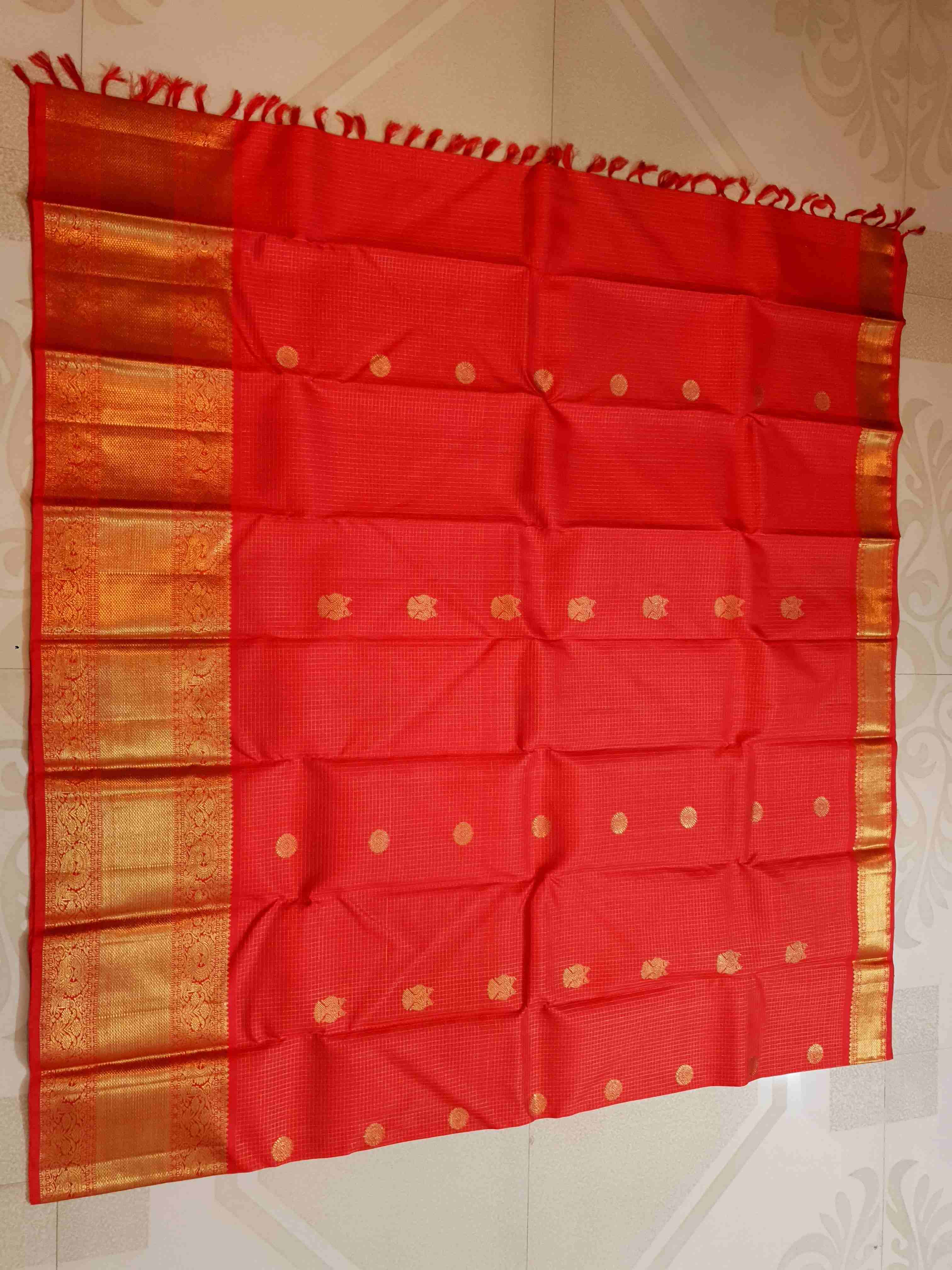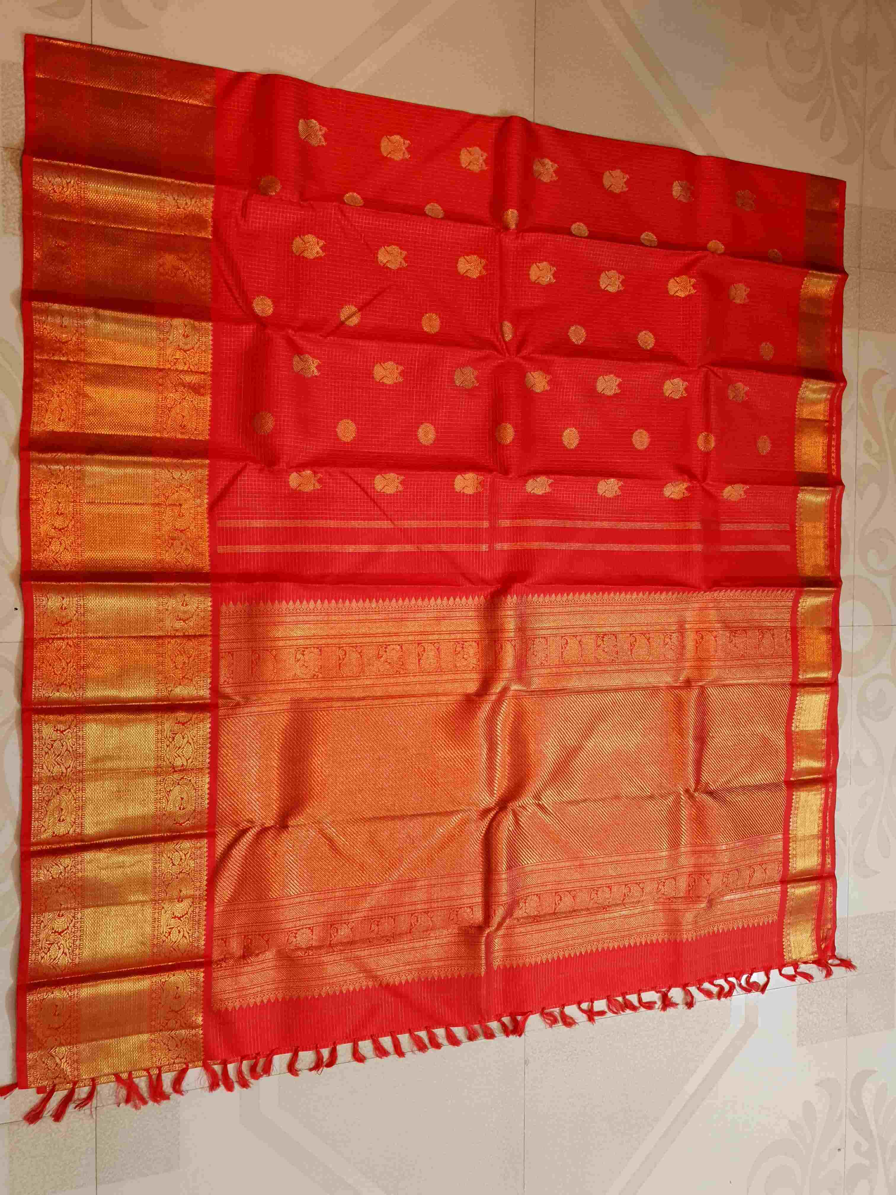 Orange Kanchipuram Handloom 4G Pure Gold Silk Saree