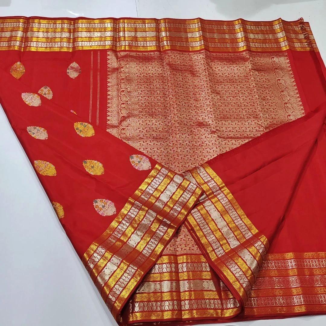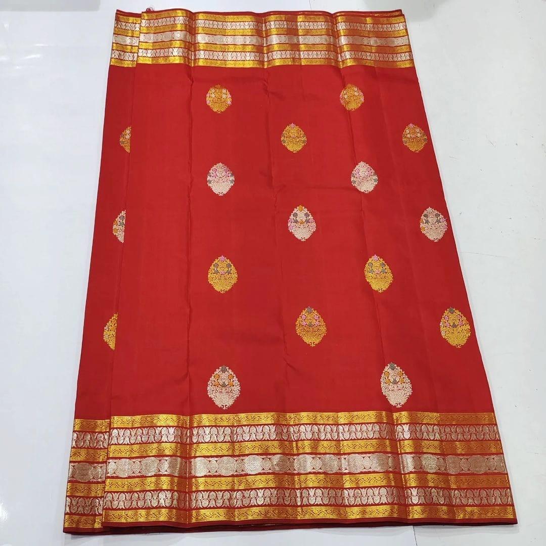 Red Kanchipuram Handloom Gold and Silver Meenakari Pattu Silk Saree