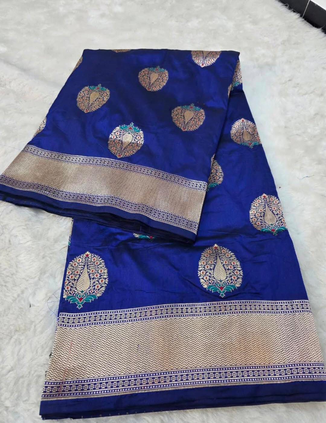 Royal Blue Banarasi Handloom Katan Silk Meenakari Saree