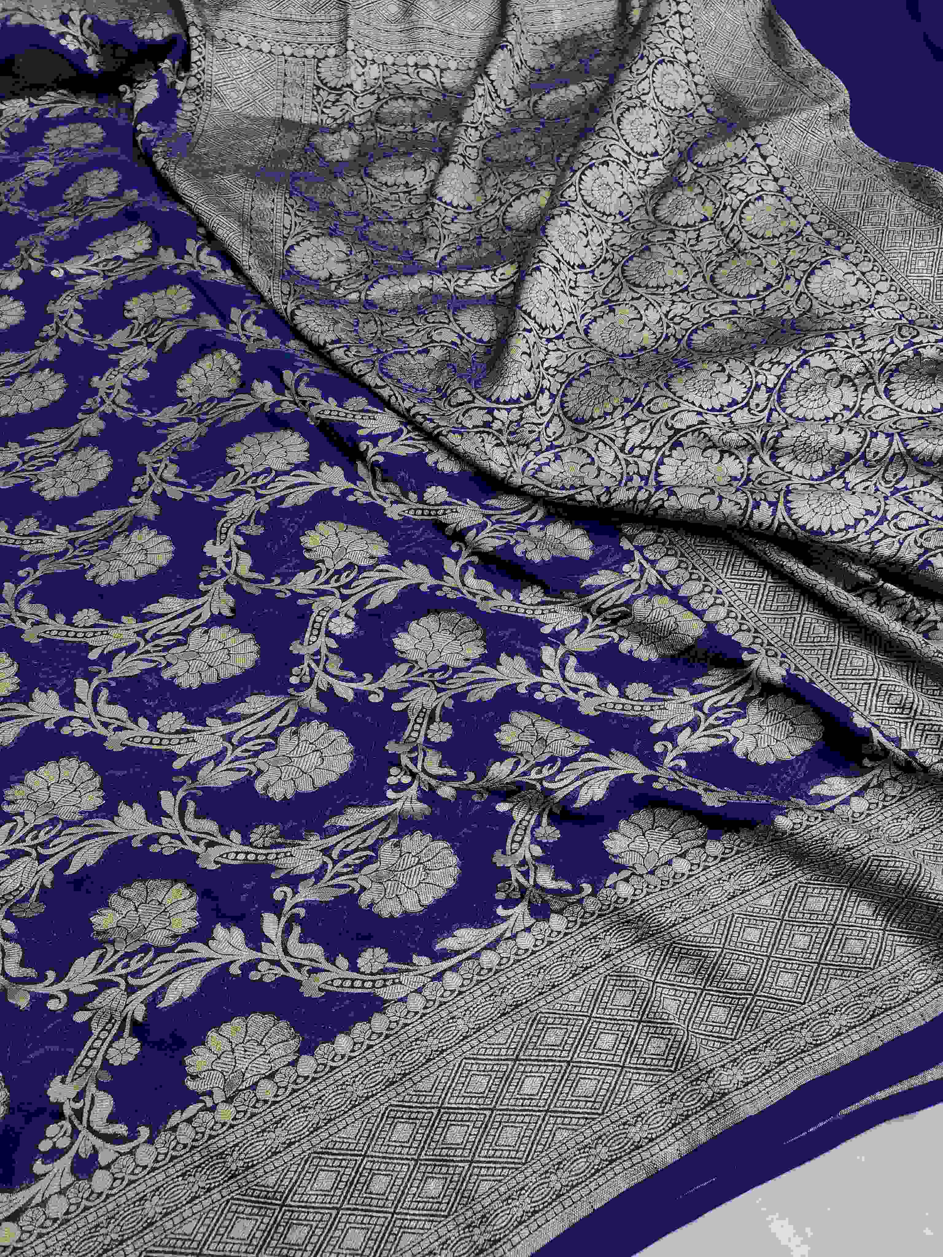Royal Blue Banarasi Handloom Water Zari Georgette Silk Saree