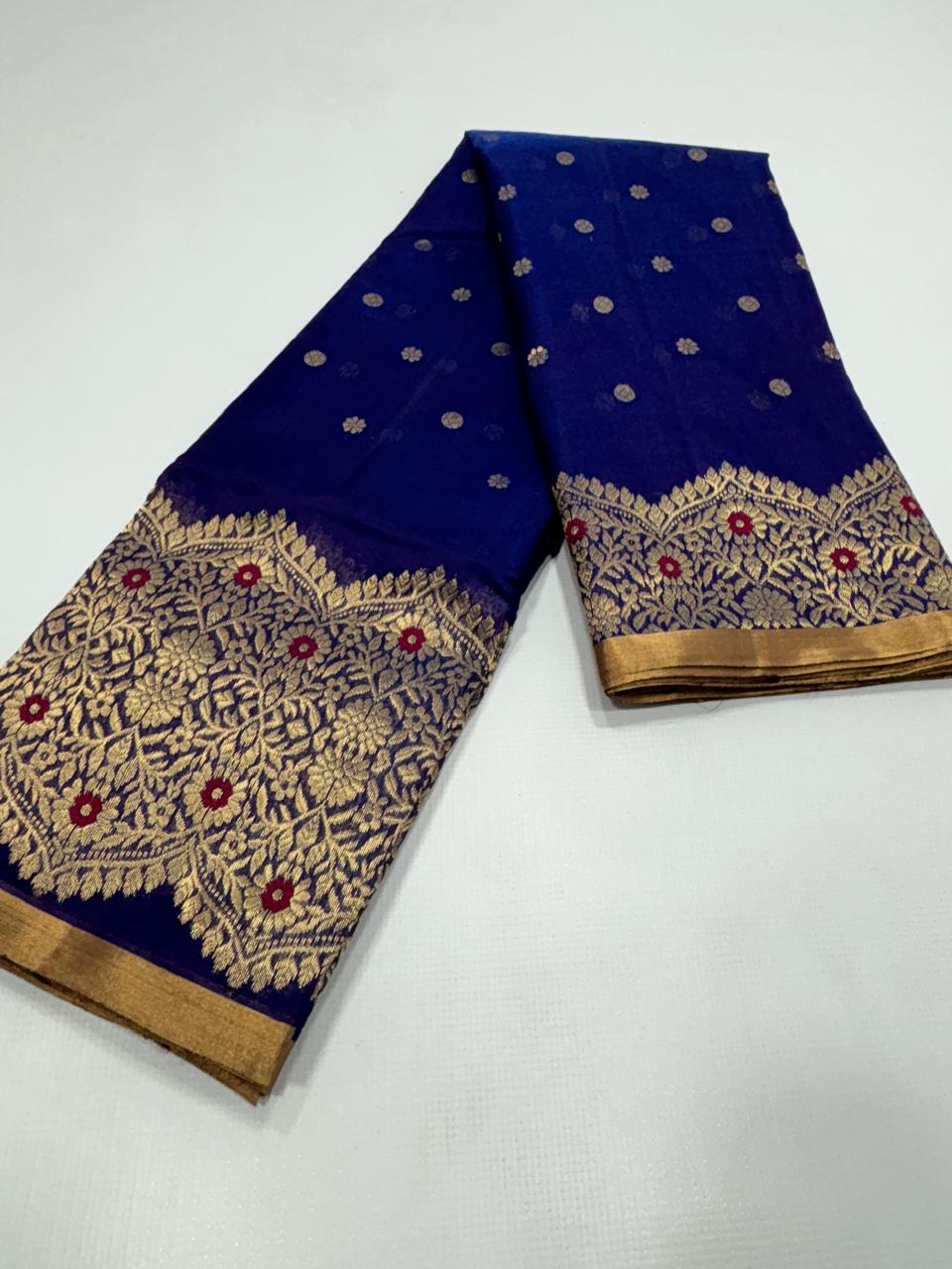 Dark Blue Chanderi Handloom Pattu Silk Sona Rupa Saree