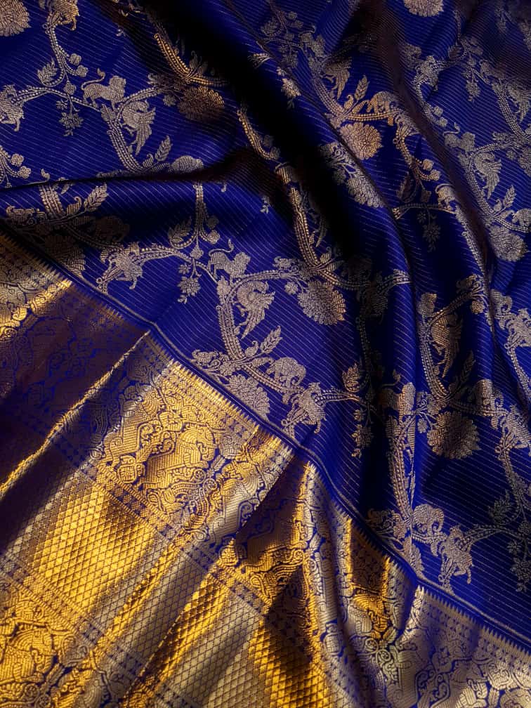 Royal Blue Kanchipuram Handloom 2G Gold Vairaoosi Silk Saree