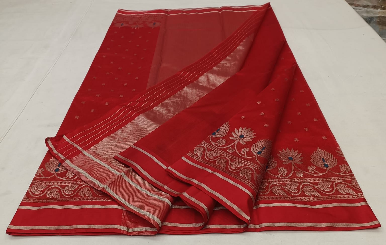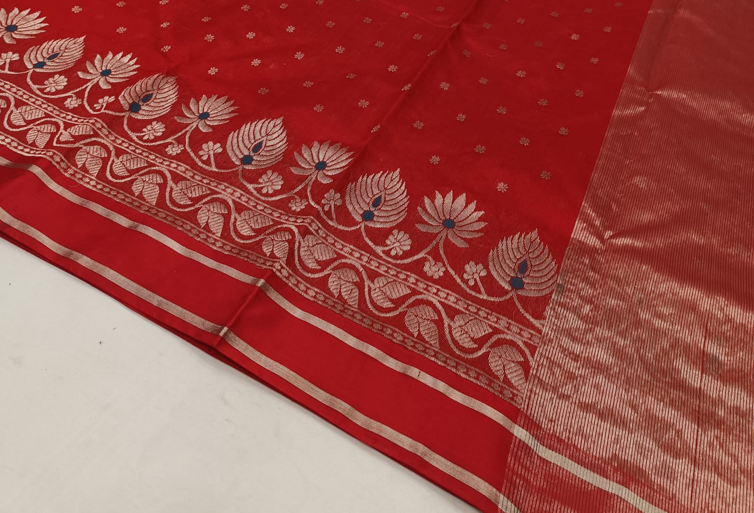 Red Chanderi Handloom Pattu Silk Bridal Saree