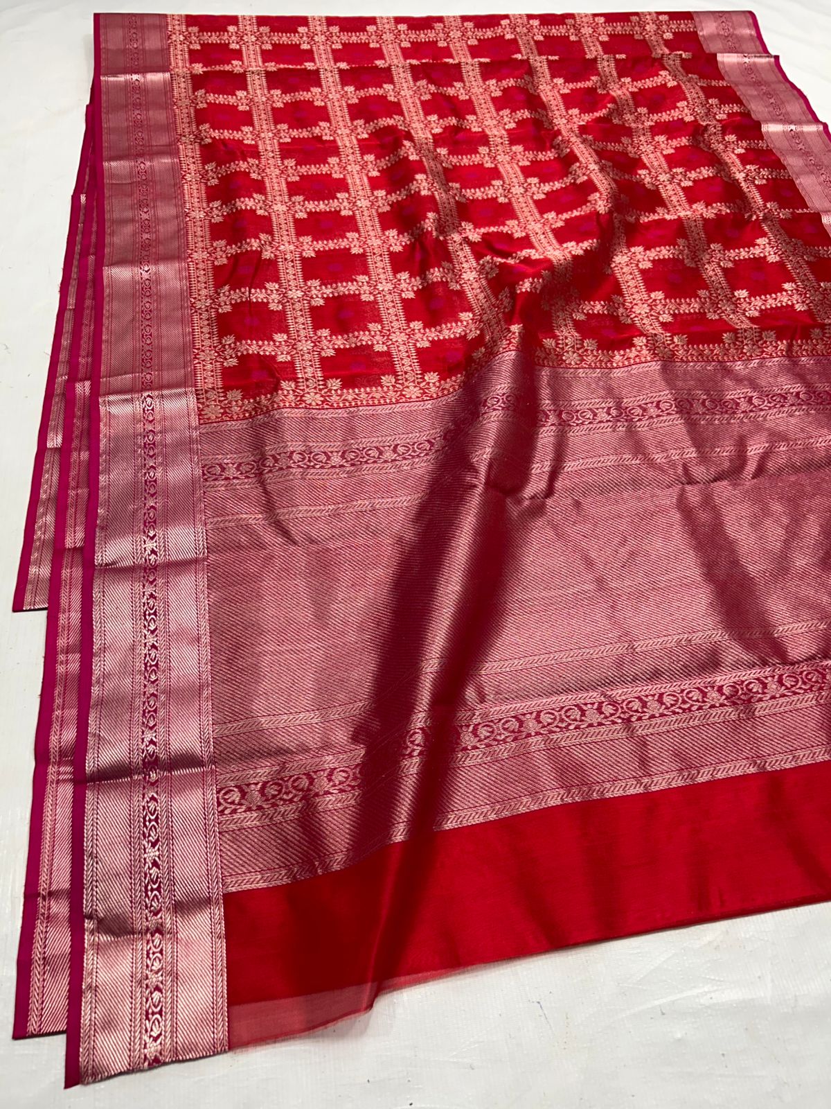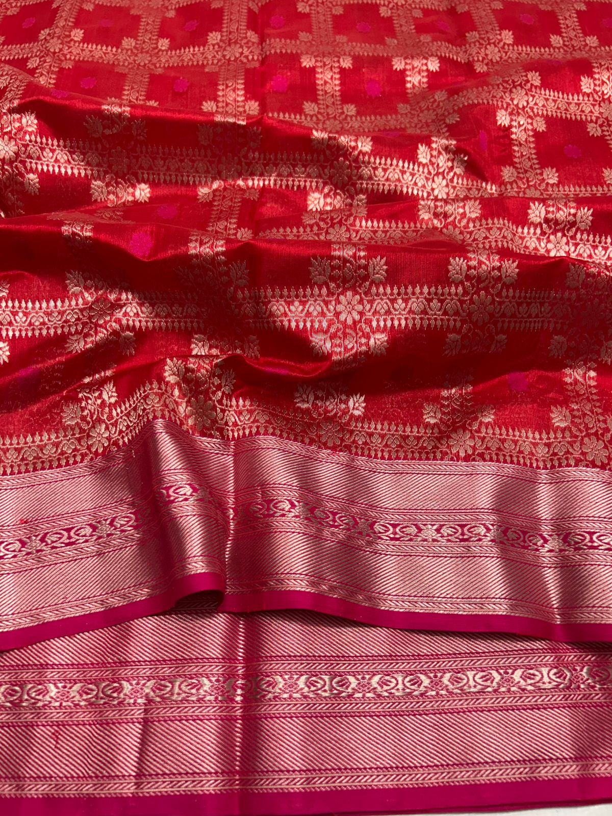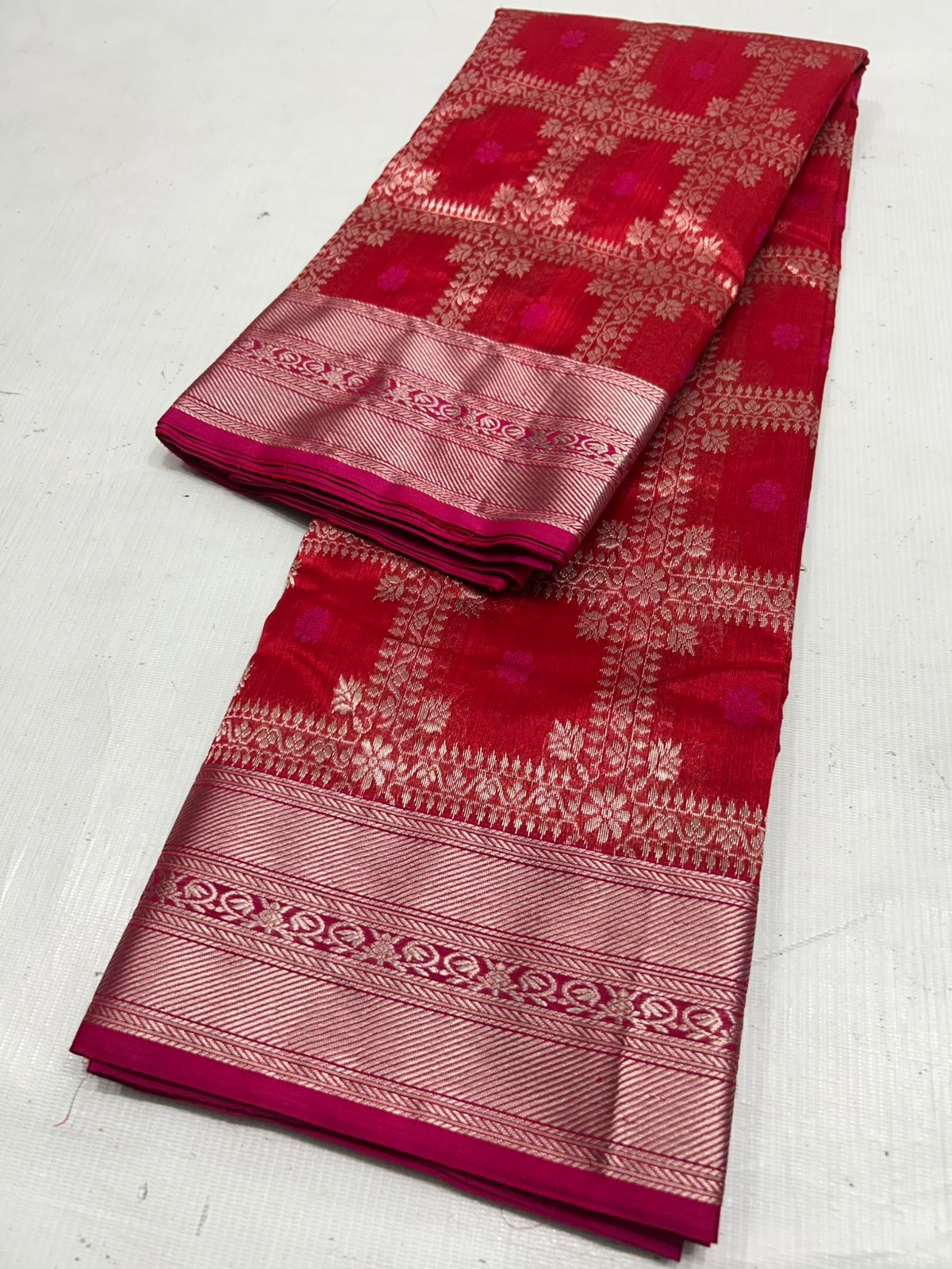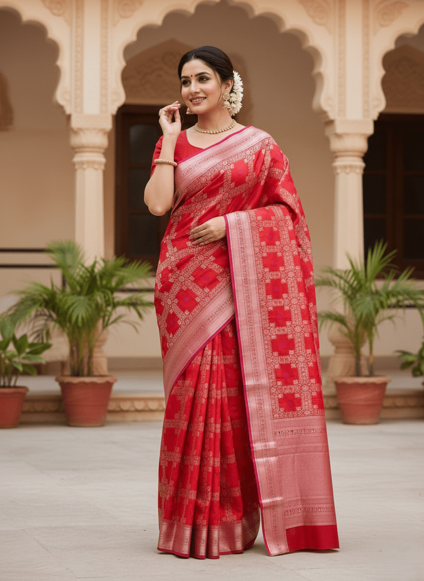 Red Chanderi Handloom Pattu Silk Saree